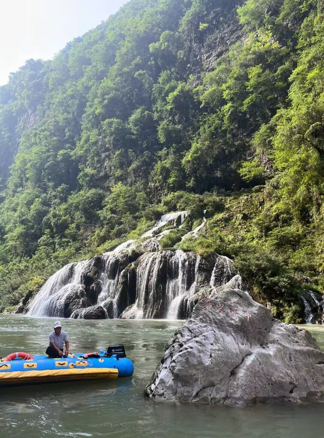 后游览【茅岩河平湖游】,茅岩河是一幅多彩多姿、生动活泼的水国画,是一帧竞奇斗艳、婀娜多娇的青山图。然后游玩【茅岩河漂流】项目(平湖游和漂流为赠送项目,若因天气原因无法游玩漂流或自身原因不参加,费用不退),目前已成为中国最大的和最安全的旅游漂流项目,是张家界“山、水、洞”旅游精品项目中最富刺激的项目。与浪共舞,一漂难忘,驾橡皮舟沿茅岩河漂流而下,漂流水程20公里,落差66米,有惊无险的河滩共55个。