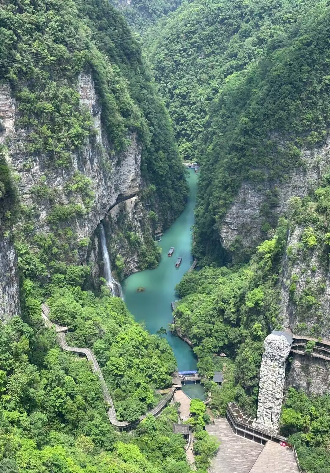 14:00游览国家 AAAA 景区有“小九寨沟”之称的—【张家界大峡谷景区+玻璃桥】,位于张家界市慈利县三官寺乡,紧邻世界自然遗产、世界地质公园张家界武陵源风景名胜区。主要景点:一线天、天梯栈道、三叠游道平台、吴王坡、石壁裂缝、千年古藤、神泉峡等。大峡谷中的飞瀑神泉比比皆是,一路游览下来,让人目不暇接。峡谷里植被繁茂,空气清新,凉爽舒适,溪水上弥漫着一层薄雾,宛如来到世外桃源,让人烦恼顿消。