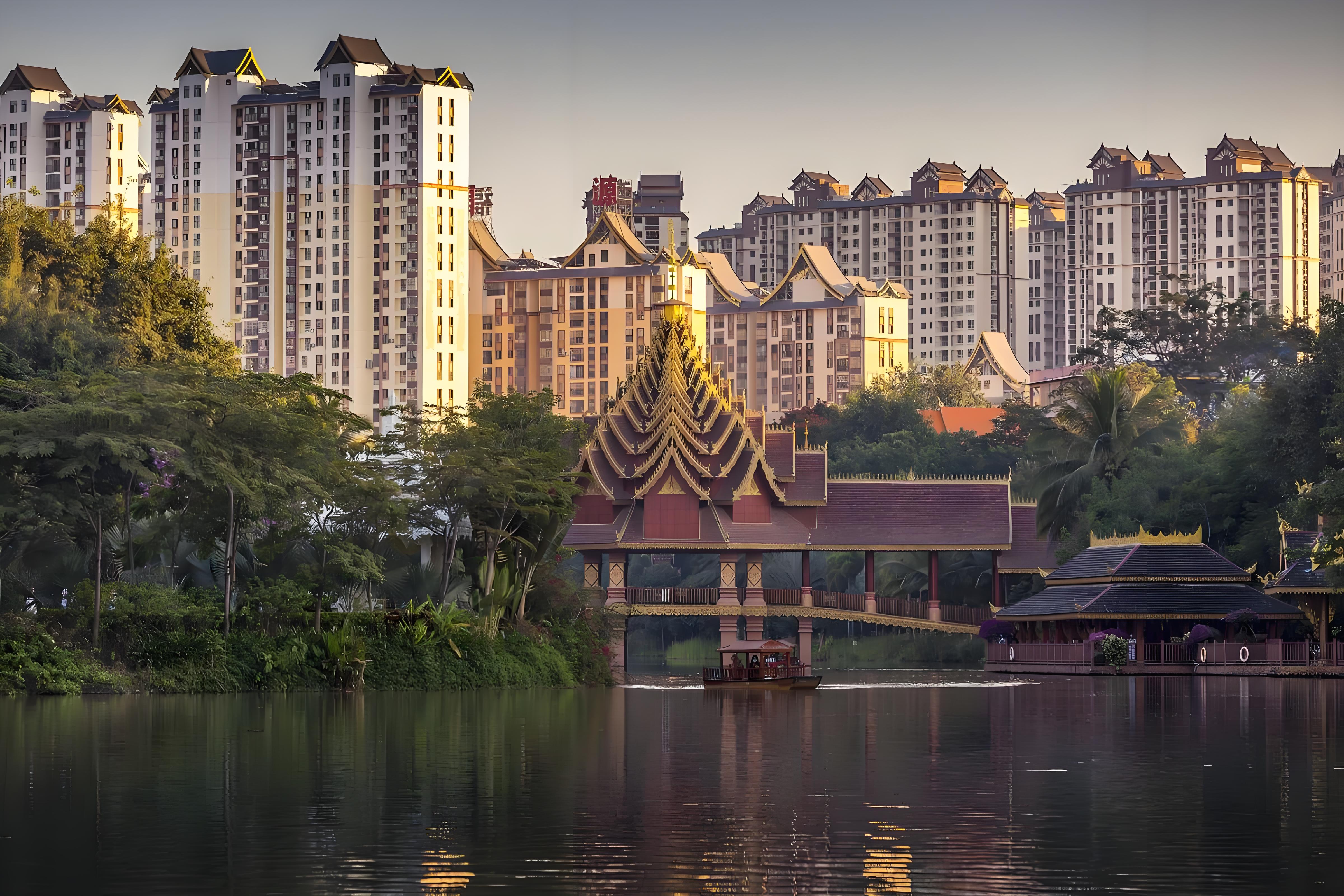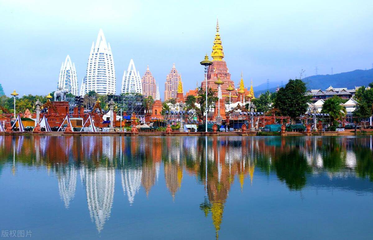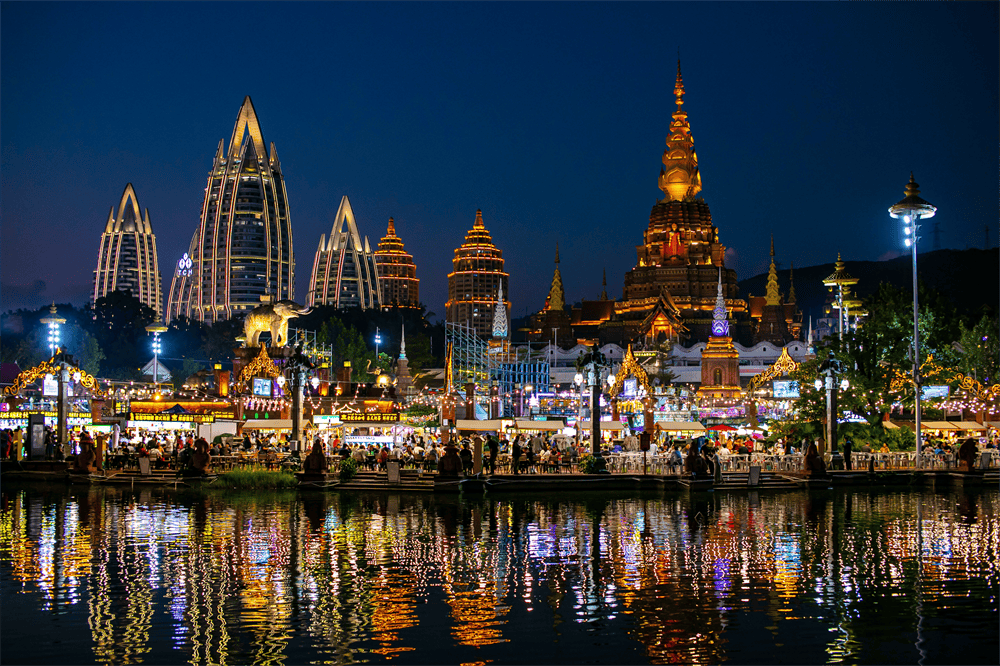 勐泐大佛寺-雨林部落风情岛-星光夜市-六国水上集市