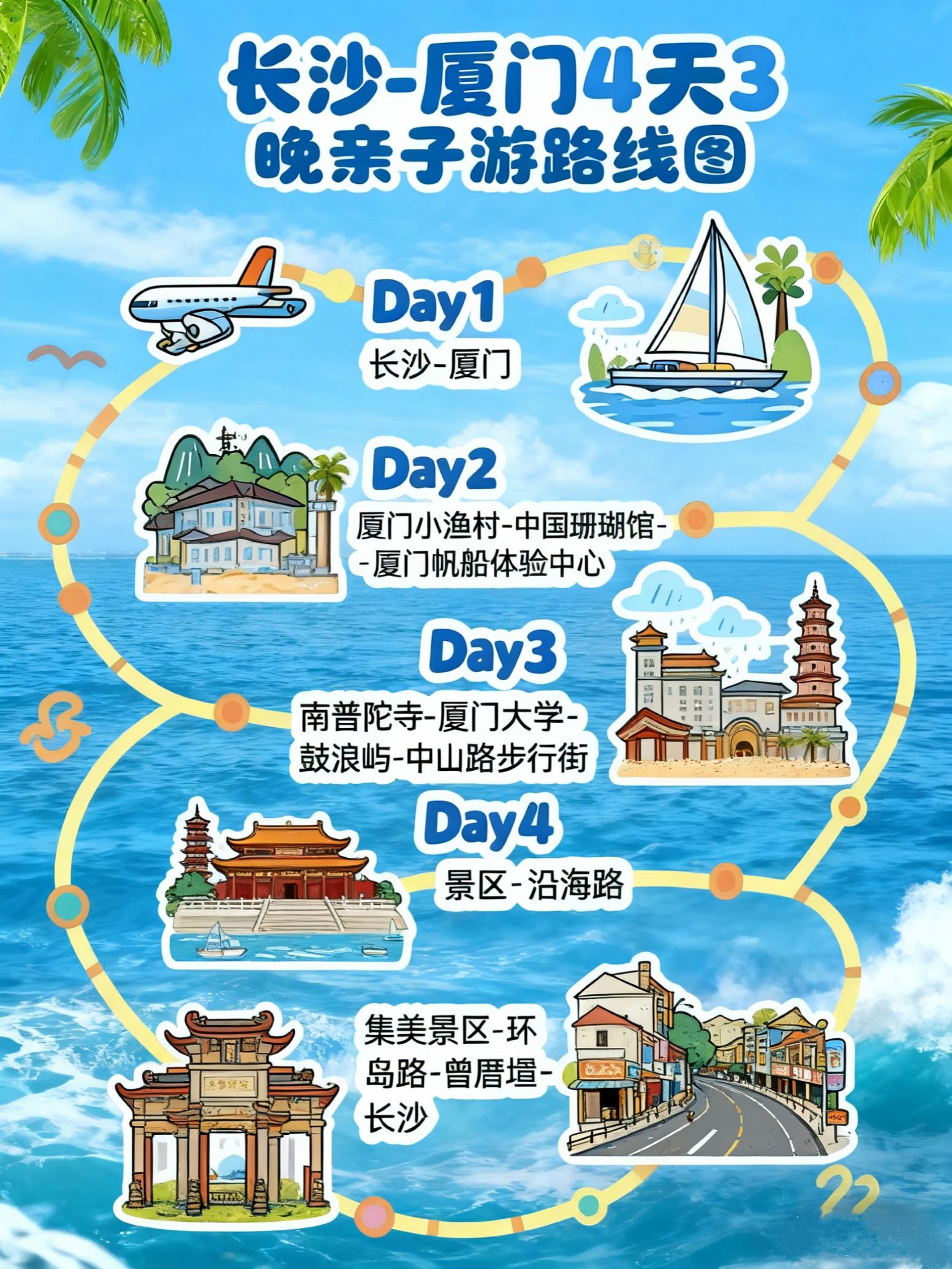 1、交通:长沙—厦门往返经济舱,含机场建设及燃油费;当地空调旅游大巴