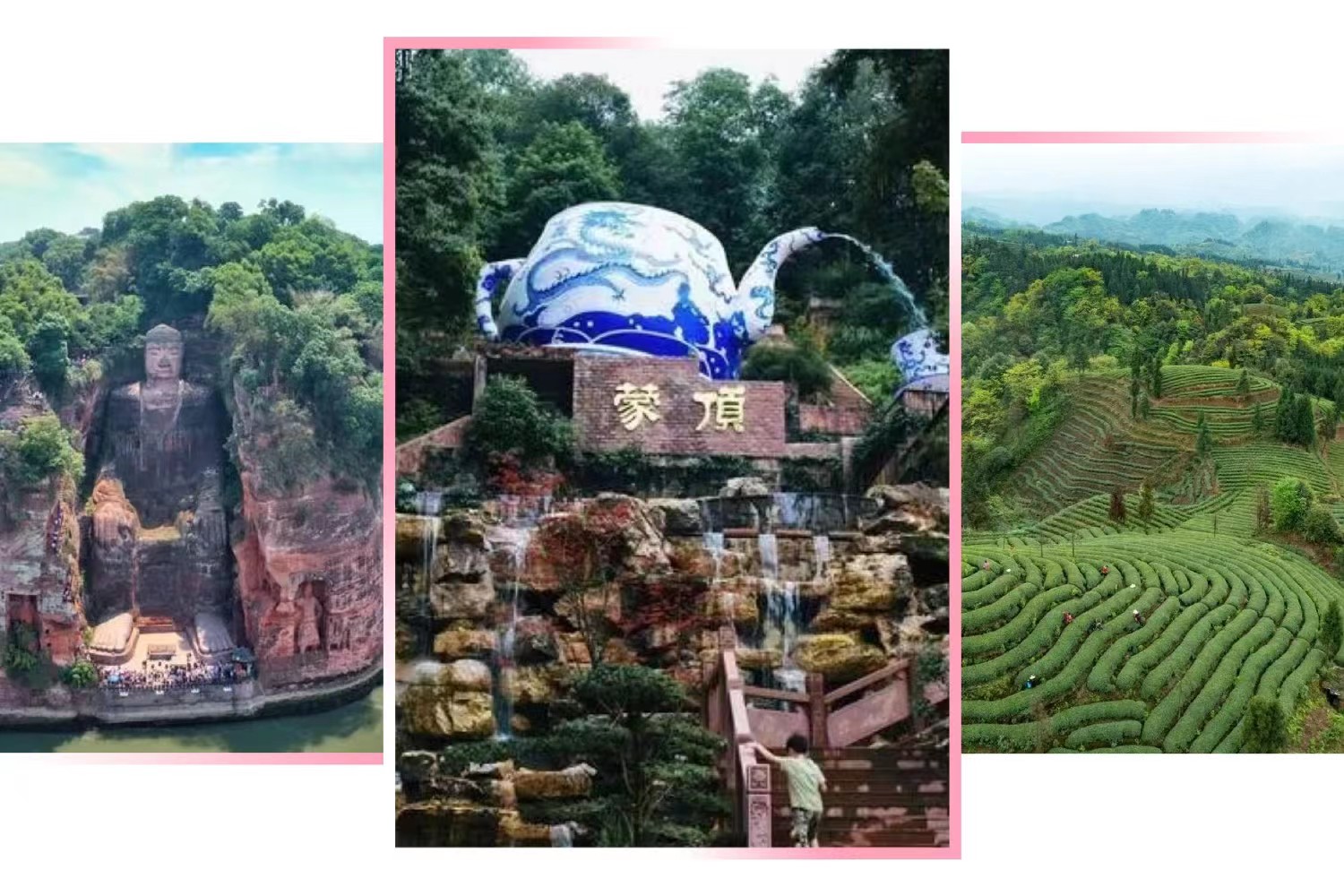 7:00 酒店享用自助早餐后,乘车前往雅安蒙顶山,游览蒙顶山风景区(体验加游览约3小时)【蒙顶山风景区】:国家4A级旅游景区,省级自然与文化遗产;蒙顶山-世界茶文化发源地,世界茶文明的发祥地,茶马古道的起点,生态环境得天独厚普的蒙顶山被誉为“仙茶故乡”。【茶园采茶体验】:在工作人员的带领下,拎上竹篮,到茶园里体验采茶活动,当一回采茶仙子,观炒茶师傅手工制作茶叶,也可自己体验制茶的乐趣。乘索道(自费往返30元/人)至天盖寺,游览天盖寺、千年银杏群、茶神殿、茶文化碑廊、千年茶树王、阴阳麒麟石、甘露泉、皇茶园,而后沿山游道返回天盖寺品贡茶、观非物质文化遗产【龙行十八式茶艺表演】。(体验和观功夫茶艺表演时间40分钟)