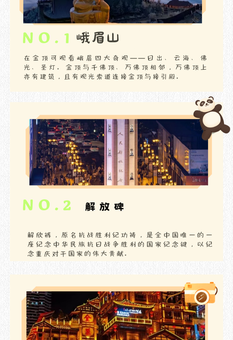 7:00 酒店享用自助早餐后,乘车前往雅安蒙顶山,游览蒙顶山风景区(体验加游览约3小时)【蒙顶山风景区】:国家4A级旅游景区,省级自然与文化遗产;蒙顶山-世界茶文化发源地,世界茶文明的发祥地,茶马古道的起点,生态环境得天独厚普的蒙顶山被誉为“仙茶故乡”。【茶园采茶体验】:在工作人员的带领下,拎上竹篮,到茶园里体验采茶活动,当一回采茶仙子,观炒茶师傅手工制作茶叶,也可自己体验制茶的乐趣。乘索道(自费往返30元/人)至天盖寺,游览天盖寺、千年银杏群、茶神殿、茶文化碑廊、千年茶树王、阴阳麒麟石、甘露泉、皇茶园,而后沿山游道返回天盖寺品贡茶、观非物质文化遗产【龙行十八式茶艺表演】。(体验和观功夫茶艺表演时间40分钟)