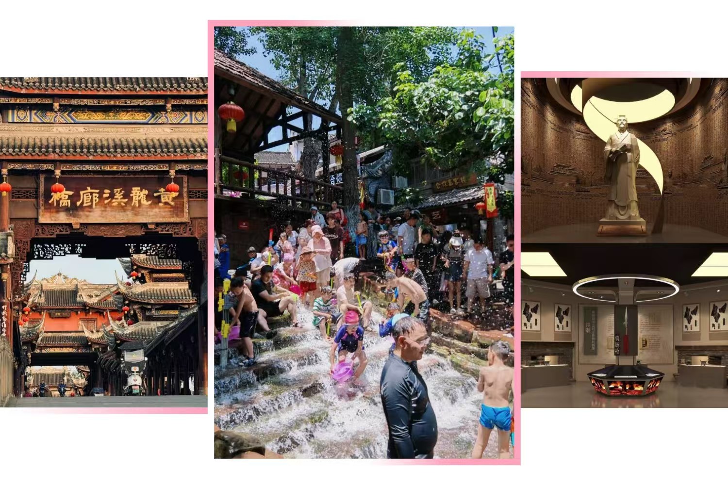 午餐后参观4A级景区天工开物(游览约1.5小时)【天工开物】:4A级景区,水晶珍品博物馆、水晶佛文化陈列馆、以及水晶精品展销区——展馆以远古佛教故事为载体,采用水晶宝石语言诠释和演绎水晶文化,馆内独特的场景,无论是地球之心的建筑轮廓,佛祖修炼的洞穴,佛陀顿悟的菩提树,五彩的星座神话,华丽璀璨的弥勒世界,全部采用稀有的水晶宝石,并充分运用创新的陈列技术,将环幕投影、幻影成像、水幕投影、全息成像、虚拟现实等高科技技术将现代科技运用到物理场景里面,通过声、光、电、多媒体手段为国内外游客展示乐山、峨眉山博大精深的佛教文化,同时为观者诠释魂牵梦绕的水晶魔力,带给游客崭新的视觉之旅。随后,前往黄龙溪千年古镇游览(约1小时)【黄龙溪古镇】:黄龙溪建镇已2100多年,历史底蕴深厚,古名“赤水”。又名永兴场。黄龙溪的核心景区是以古镇为中心的5平方公里的地区,她以古街、古树、古庙、古堤、古埝、古民居、古码头、古战场、古崖墓和古衙门的“十古”著称。
