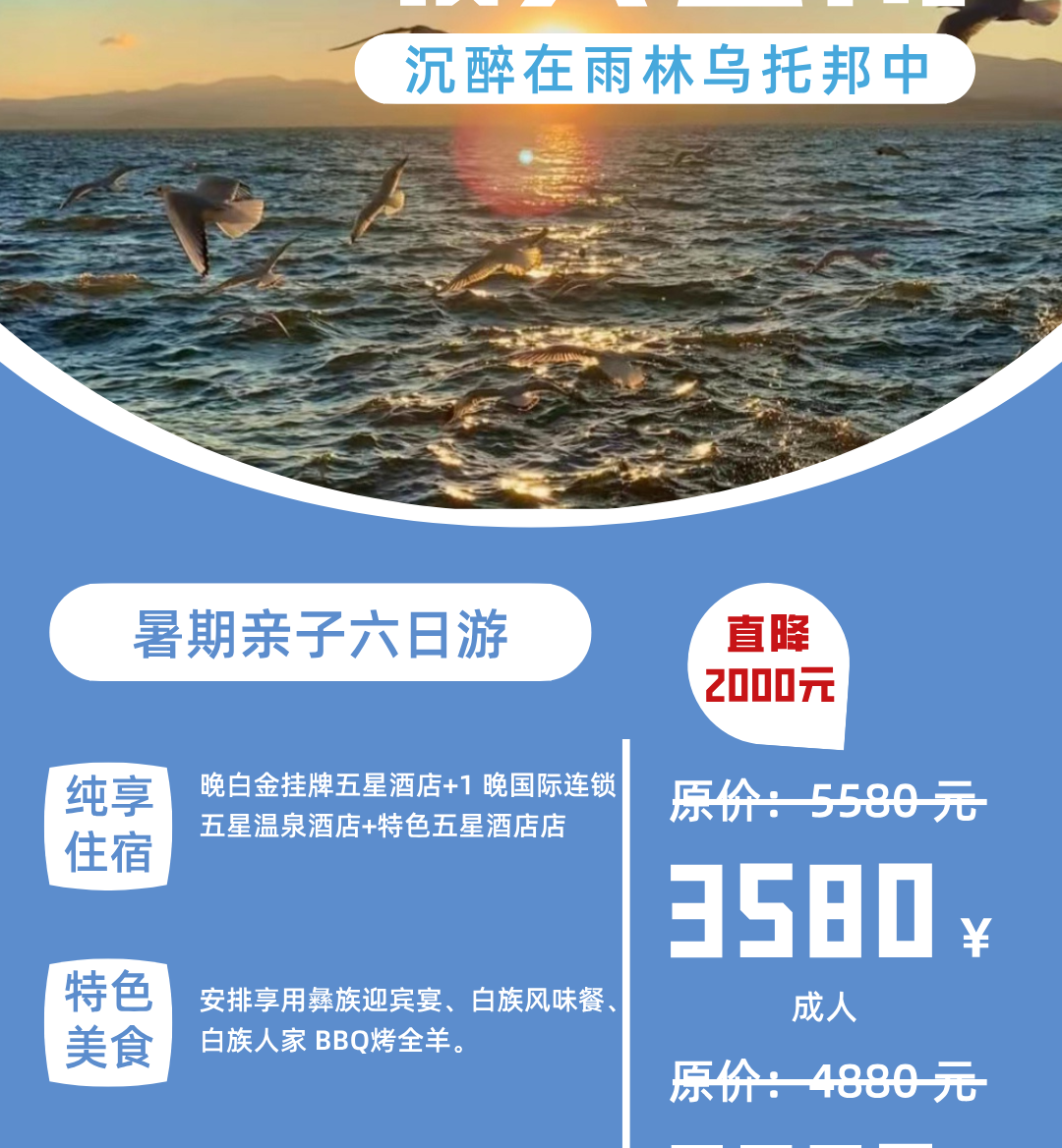 午餐之后乘车前往码头,乘【私人游艇】游览【洱海】,在游艇上观看私人乐队演出,赏山清水秀,海天一色。结束后乘车前往游览苍洱间最美【花海】(栽种鲜花),这里是花的海洋,一年四季鲜花不重样,五彩缤纷、芳香四溢,想要体验大理独有的慢时光当然非这里莫属!在田园风光中不仅仅有魅力诱人的花海视角,在网红打卡道具旁,留下最唯美的旅行记忆 在大自然的怀抱中,陪同孩子亲手体验栽种鲜花的乐趣,让孩子亲近自然,懂得爱护大自然的花花草草。在身心愉悦中,漫游苍山洱海,感受慵懒的风花雪月时光。结束后前往餐厅,抵达后各位贵宾在白族庭院享受最高规格特色餐白族BBQ烤全羊,用餐期间有伴餐南涧跳菜舞蹈,餐后白族篝火晚会,体验白族‘霸王鞭’,各位贵宾餐后可免费换白族服装照相参加篝火晚会,之后入住酒店休息。