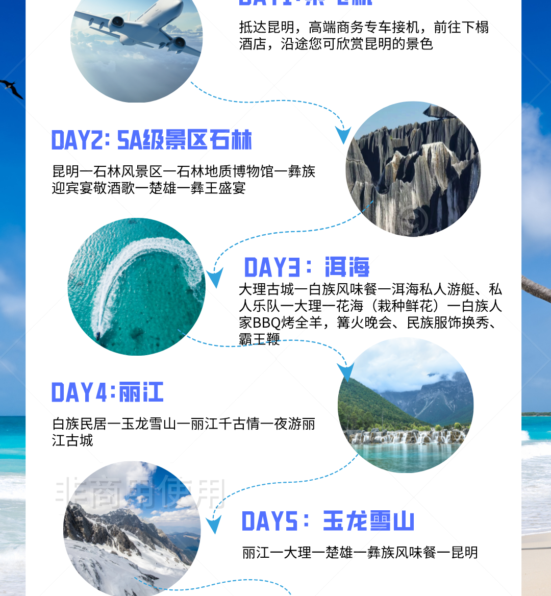 1、交通:长沙—昆明往返经济舱,含机场建设及燃油费;当地空调旅游大巴