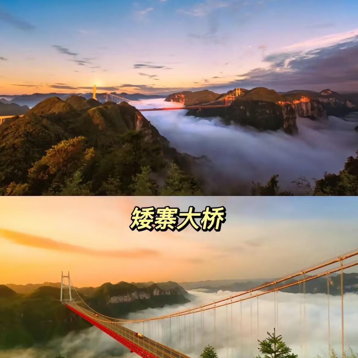 乘观光电梯至大桥观光通道,近距离观亚洲第一的斜拉式铁索桥矮寨大桥,桥面设计标高与地面高差达330米左右。桥型方案为钢桁加劲梁单跨悬索桥,全长1073.65m。悬索桥的主跨为1176m。该桥跨越矮寨大峡谷,主跨居世界第三、亚洲第一。矮寨公路奇观一览无余,让您美景中感叹的祖国的强大。