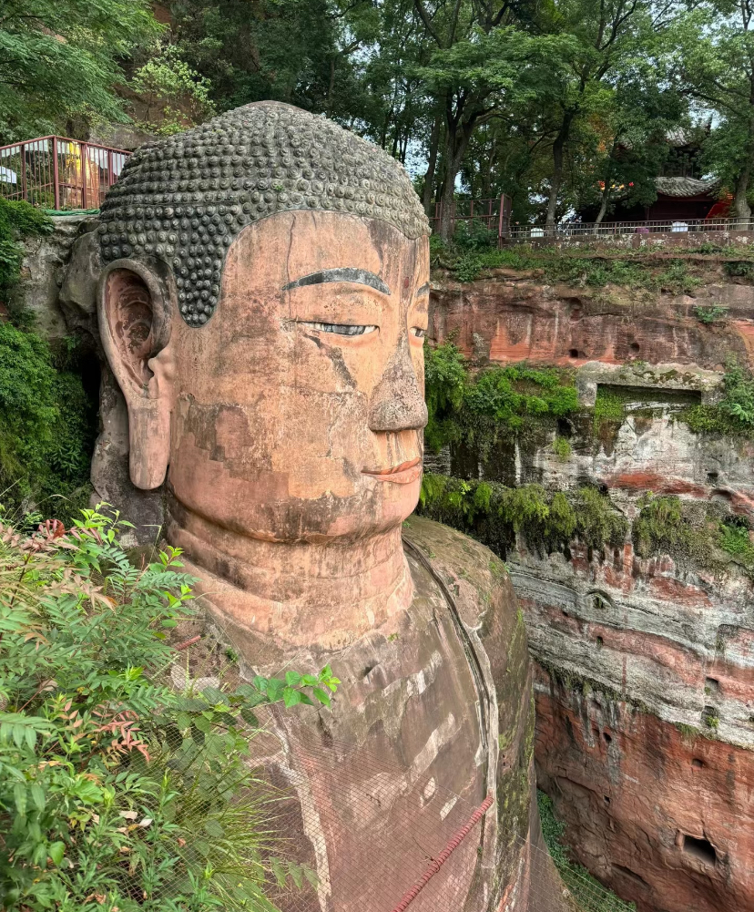 船游乐山大佛(40分钟)乐山大佛,又名凌云大佛。雕凿在岷江、青衣江和大渡河汇流处岩壁上,依岷江南岸凌云山栖霞峰临江峭壁凿造而成为弥勒佛坐像,通高71米 是唐摩岩造像的艺术精品之一,历时 90 年才告完成,是世界上最大的石刻弥勒佛坐像,国家 5A 级旅游景区,乐山大 佛素有“山是一尊佛·参拜,庄严雄伟,佛是一座山·仰视,气势崴嵬”之称。