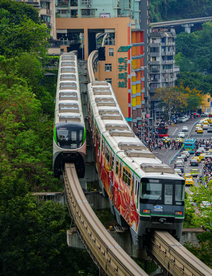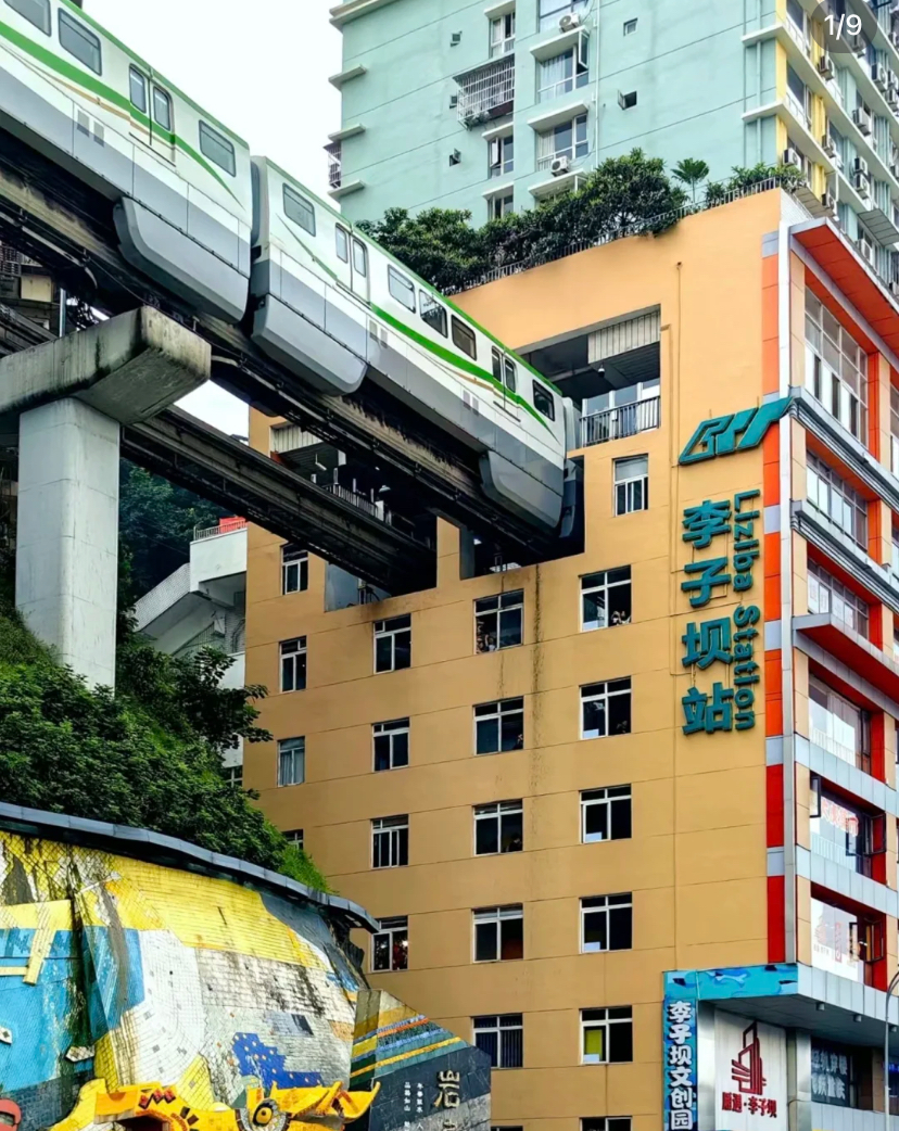 李子坝轻轨站穿楼,轨乱穿梭,变身过山车。在重庆轻轨2号线的李子坝站穿越房屋,每天都会上演轻轨穿楼越壑,空中飞驰而过的神奇一幕。现已经成了全国的网红景点,每天都有很多人拍轻轨穿过楼房的一瞬间。