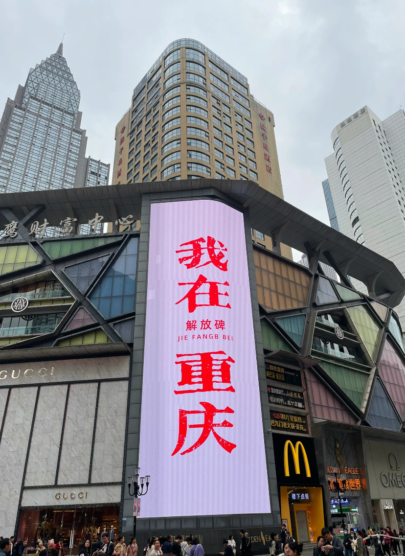 解放碑,原名抗战胜利纪功碑,是全中国唯一的一座纪念中华民族抗日战争胜利的国家纪念碑,以纪念重庆对于国家的伟大贡献。位于重庆市渝中区,位于民权路、民族路和邹容路交汇处,它是抗战胜利和重庆解放的历史见证。碑体绝大部分呈白色,有些地方是肉色,上端有几架大钟,朝着四面八方,每到整点时,便会响起声音。塔是八角形的。"解放碑"是解放碑中央商务区(CBD)的代名词。有"西部第一街"美誉。有望跻身中国第三大商圈。