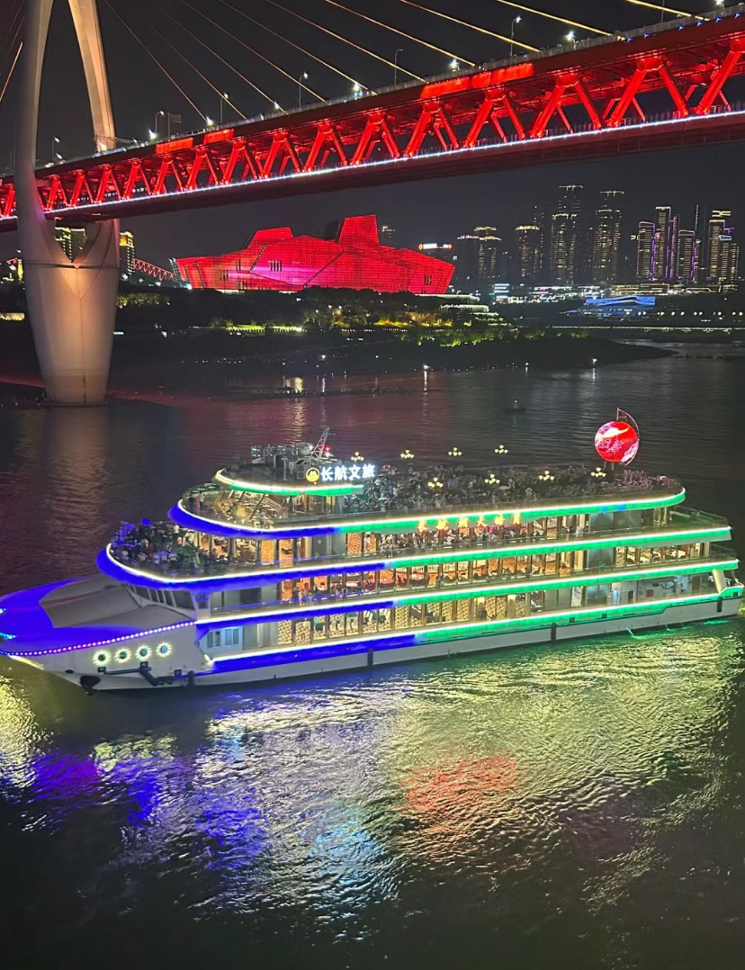 船游夜览长江“不览夜景,枉到重庆”。山城重庆两江四岸的景色早在清代的时候即是巴渝名景之一。来重庆,不看重庆夜景,真有点感觉白来了。而看夜景最好的方式是乘坐游船,巡游两江,趁着徐徐清风,将山城容貌饱览眼中,存入心中。