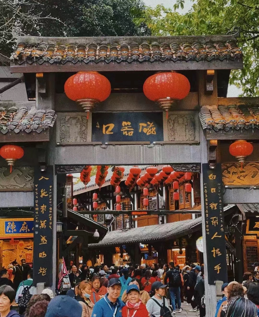 千年古镇磁器口位于重庆市沙坪坝区嘉陵江畔,始建于宋代,拥有"一江两溪三山四街"的独特地貌,形成天然良港,是嘉陵江边重要的水陆码头。曾经"白日里千人拱手,入夜后万盏明灯"繁盛一时。磁器口古镇蕴含丰富的巴渝文化、宗教文化、沙磁文化、红岩文化和民间文化,各具特色。一条石板路千年磁器口,是重庆古城的缩影和象征。被赞誉为"小重庆"。磁器口古镇开发有榨油、抽丝、制糖捏面人、川戏等传统表演项目和各种传统小吃一条石板路千年磁器口,是重庆古城的缩影和象征。被赞誉为"小重庆"。