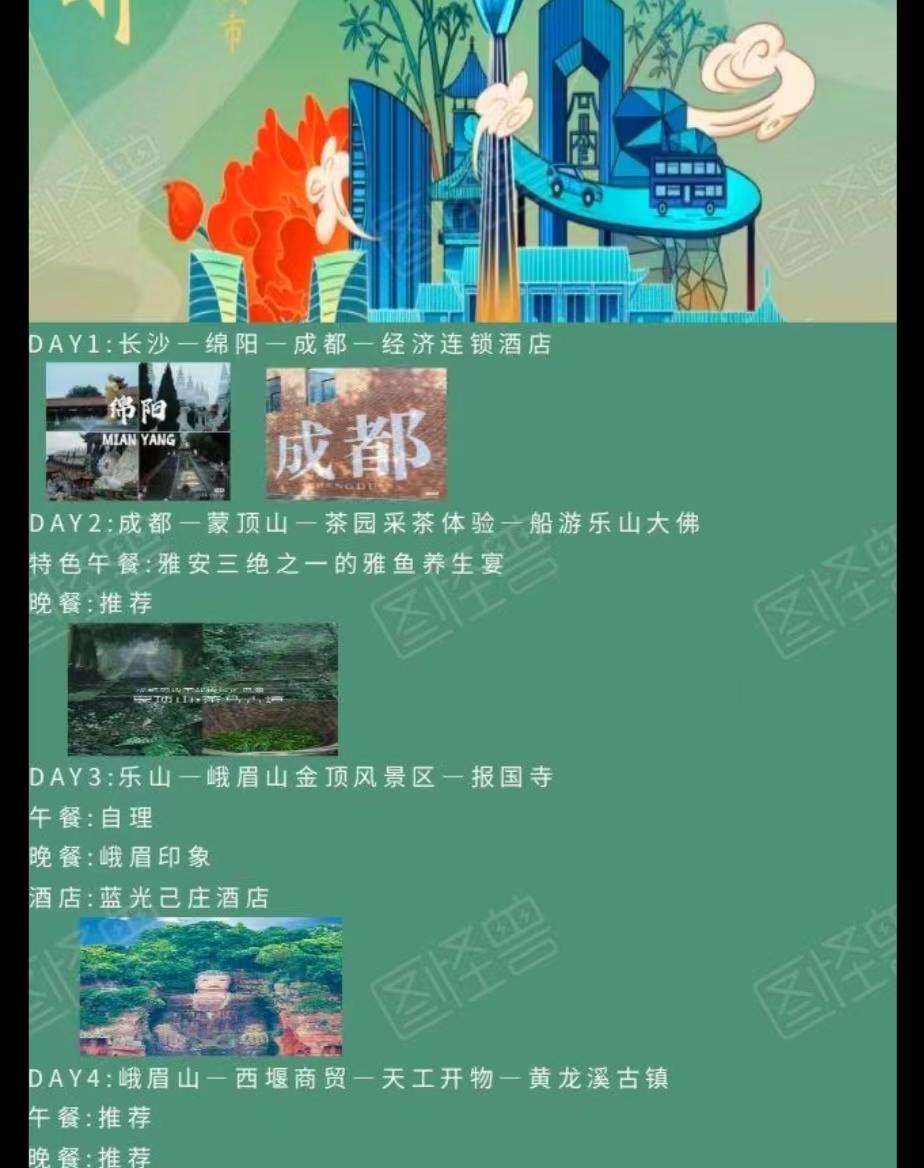 1、交通:长沙-绵阳经济舱,含机场建设及燃油费;当地空调旅游大巴