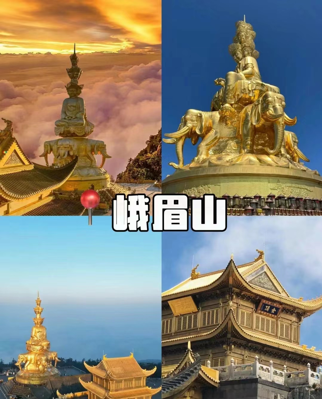 7:00 酒店享用自助早餐后,出发前往【峨眉山报国寺】(游览50分钟) 【峨眉山-报国寺】,后出发游览峨眉山金顶游览(约2小时)【峨眉山-金顶】,午餐后乘坐金顶往返索道(费用自理,往返120元/人)上金顶,在峨眉山金顶,还可能欣赏峨眉的四大奇景:日出、云海、佛光、圣灯。