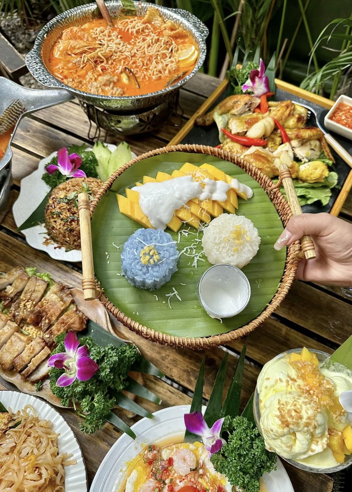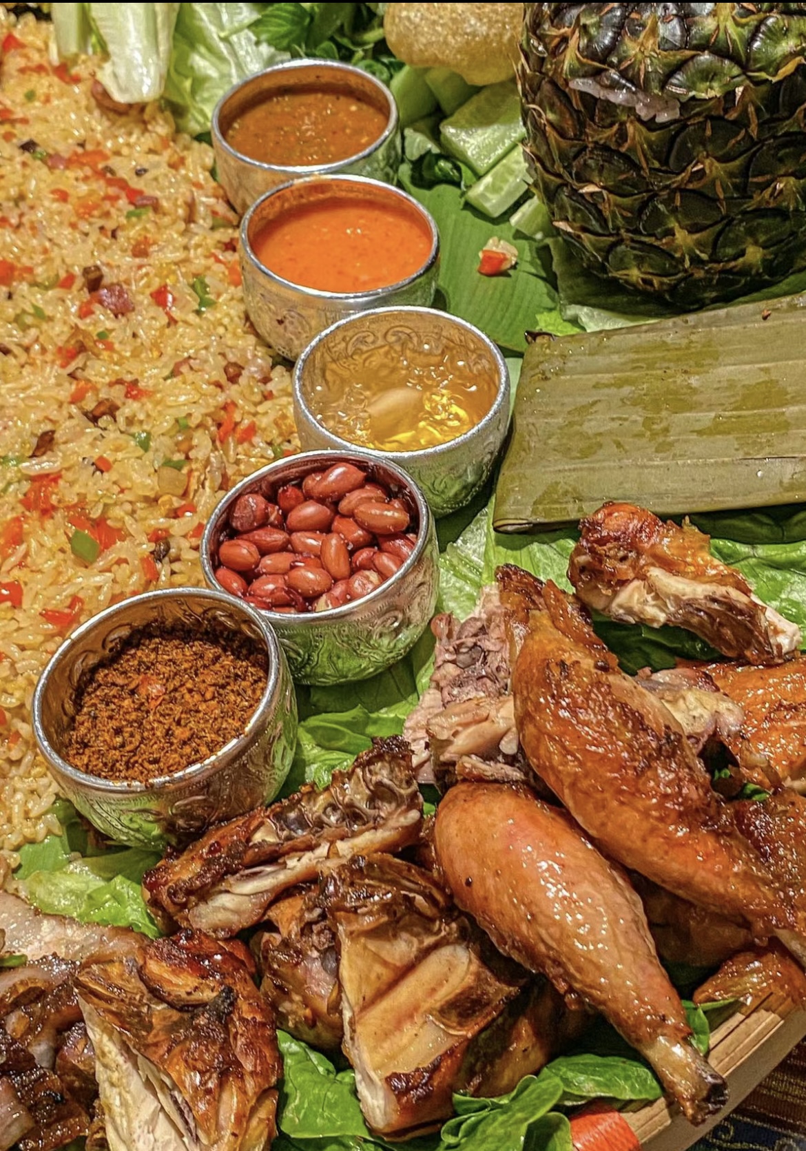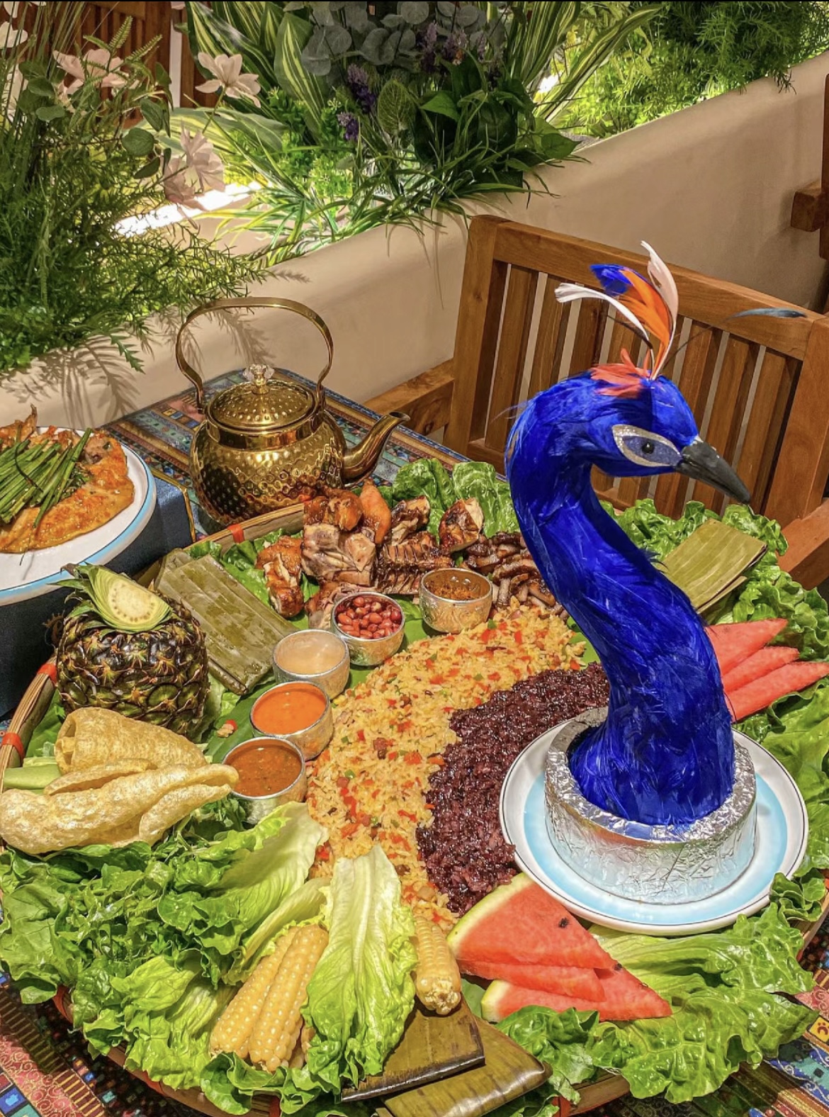 午餐我们特别安排傣味孔雀宴。何谓“孔雀宴”,孔雀宴就是过去傣族皇室接待贵宾的宴席,是傣家最具特色的宴席之一,它融合了傣族人民聪明、勤劳和爱美的特性。孔雀宴汇聚了傣家最具特色的佳肴美味,采集原生态新鲜食材用烤、炸、煎、炒、煮、凉、蒸、舂等傣家传统烹饪方法精心制作而成,摆放成孔雀开屏的形状,象征着幸福安康象征着吉祥如意。