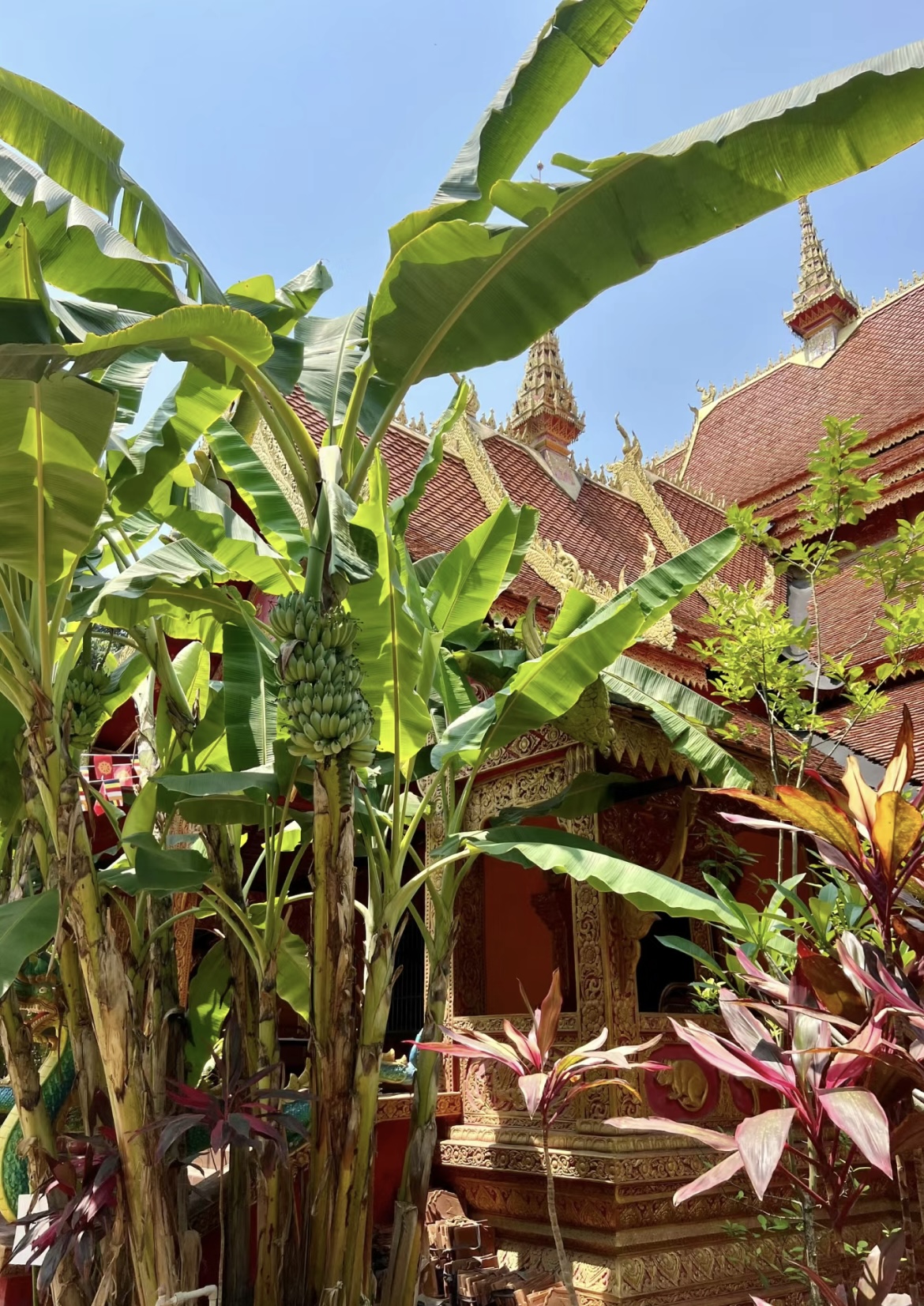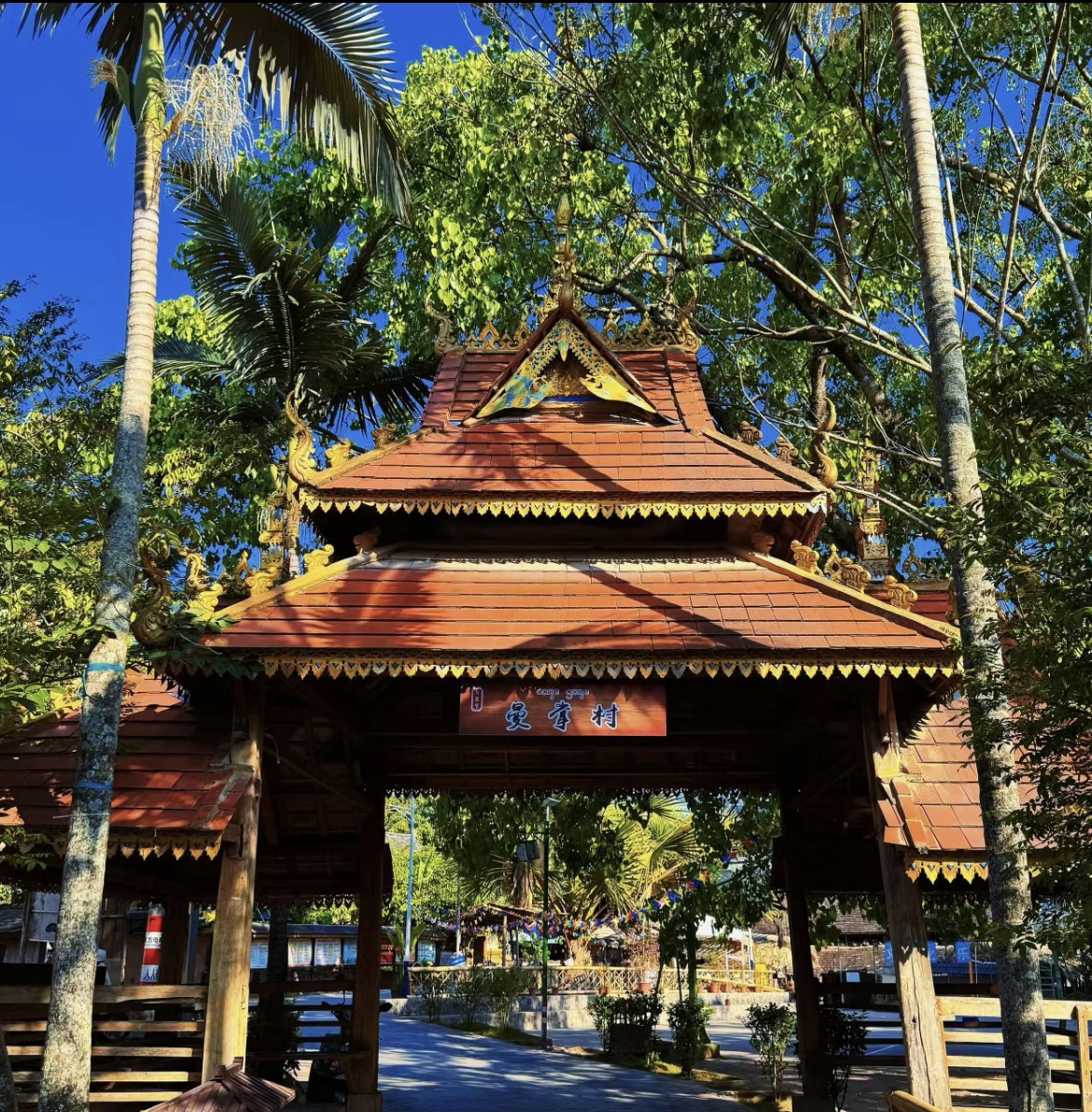 早餐后乘车前往游览参观——傣家村寨。漫步寨中,遍地花木扶疏,青葱蓊郁的宽叶芭蕉,绿树环抱的傣家竹楼与田园交错,虔诚供奉的佛寺在晨光中熠熠生辉。您将在这里了解到傣家传统佛教文化、村寨文化,以及纯朴的民族文化、体验民居、民俗、民族手工艺。