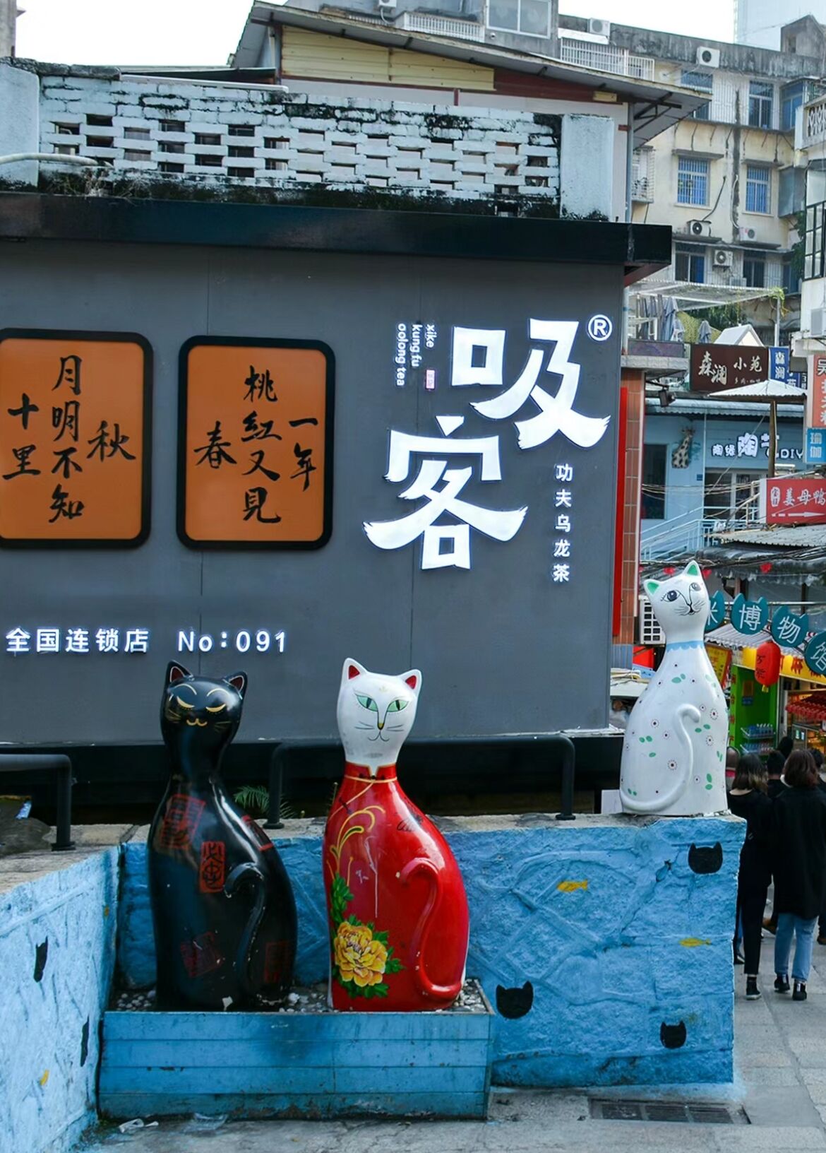 前往【顶澳仔猫街】(游览1小时)被赋予了许多猫的元素,随处看到在商业街的墙上、电线杆甚至是小吃店面门口或窗台,都被粉刷上五颜六色的涂鸦,均是各品种的猫的卡通形象,是一条有创意并且很有特色的街巷。在这里宣传猫文化,传播有关猫咪的各种知识,包括种类、习性等,可以感受到很多关于猫咪的知识。