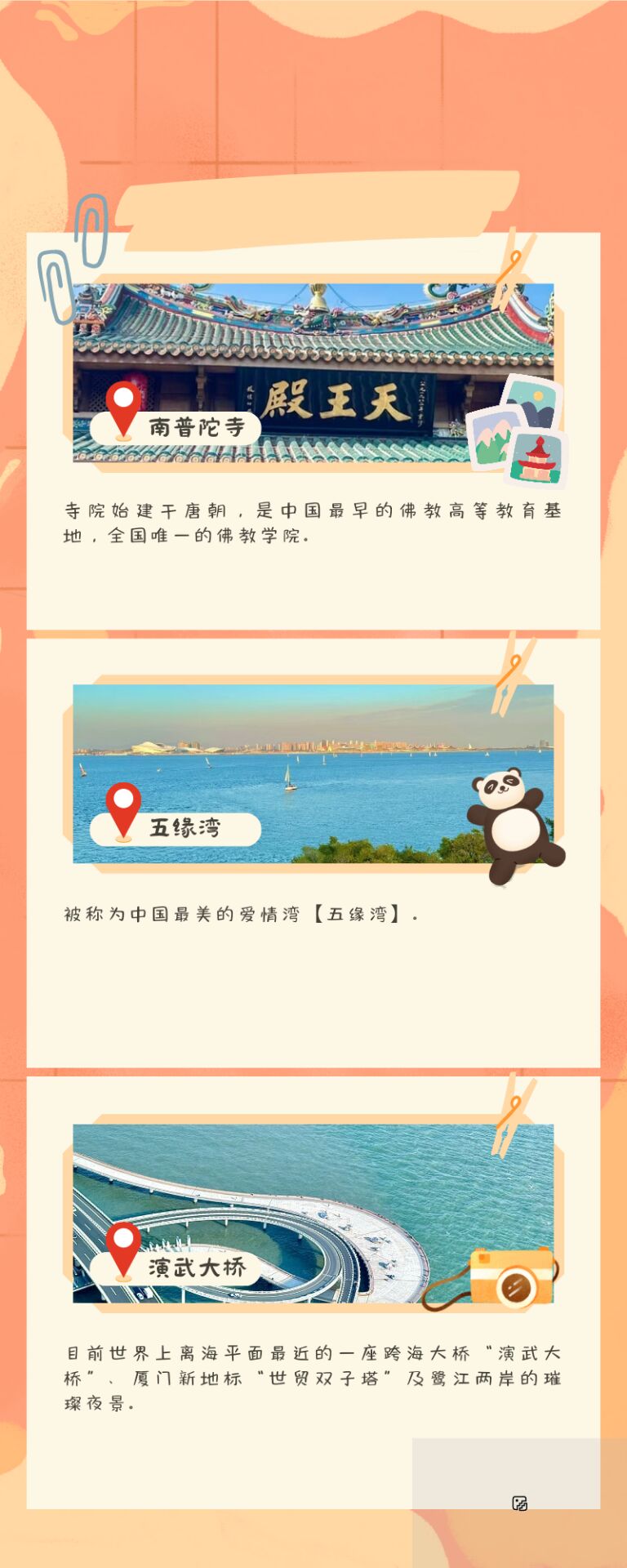南普陀寺在厦门这座繁华的海边城市中,承担着一个重要的信仰角色。寺院始建于唐朝,是中国最早的佛教高等教育基地,全国唯一的佛教学院。后进入厦门大学,由厦外籍留学生带领大家参观,全程双语交流,感受中西方文化差异的魅力,游览【芙蓉湖畔】的秀丽风景,感受【芙蓉隧道】里厦大学生自由奔放的涂鸦文化,体会厦大“自强不息、止于至善”的校训。左手读山,右手悟海,东出访寺,西去游湖——科学与宗教,人文与自然,青春与古老……这种不可思议的体验,在中国的大学中也只有厦大人才能体会吧。(特别声明:如遇厦门大学政策规定不得入校参观,则景点换成【万石植物园】,校外用餐。)
