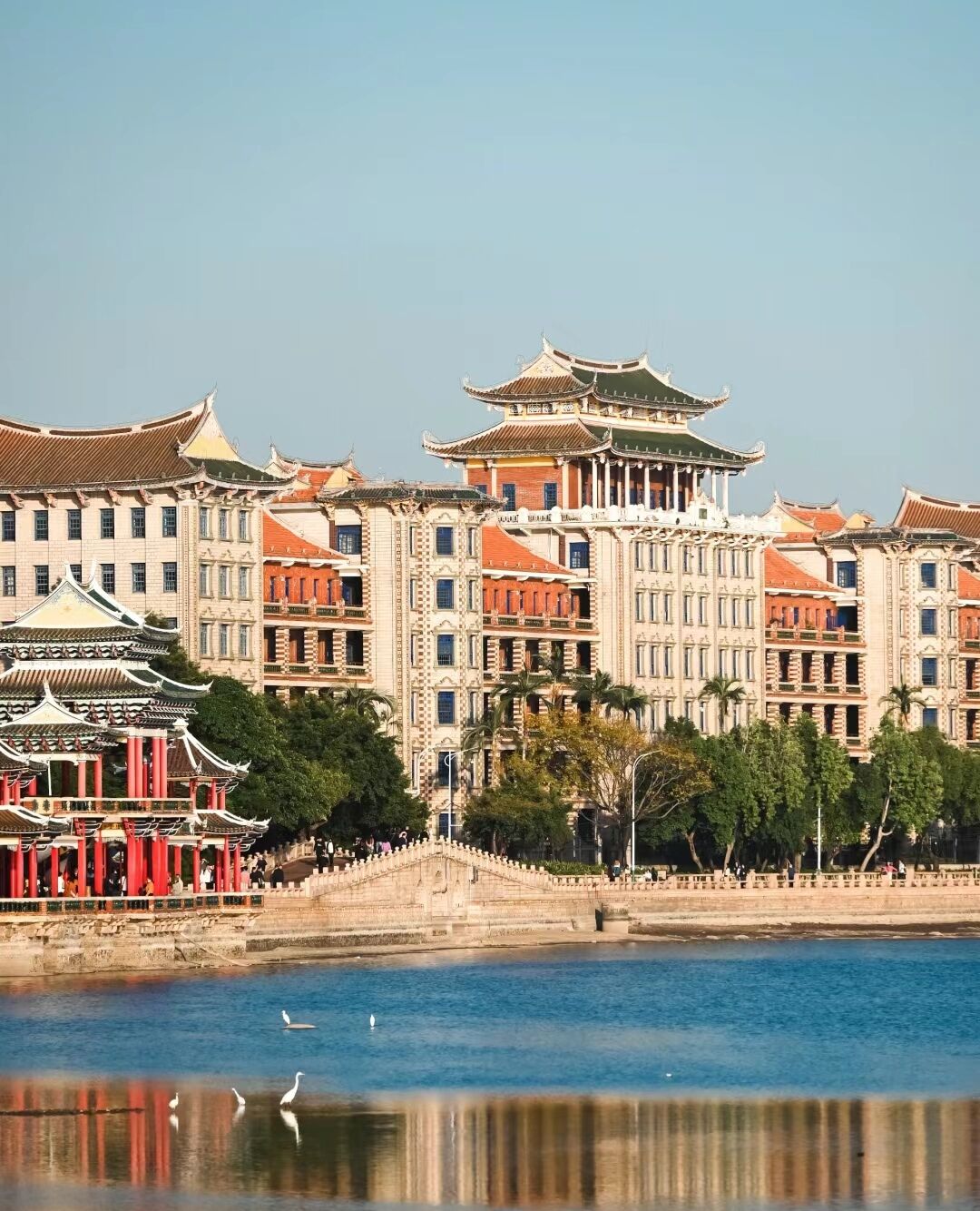 由爱国华侨陈嘉庚先生倾资创办的【集美学村】龙舟池、归来堂及铜像广场,各种百年校舍,整体的建筑风格为中西合璧,呈现了典型的闽南侨乡的风格。【鳌园】有着闽南“石雕博物馆”之美称,耗时10年建成,分门廊、集美解放纪念碑和陈嘉庚先生陵墓三个部分。园中共有650多幅精雕细刻、栩栩如生的青石雕,是闽南石文化的主要代表作,包含中外古今、天文地理、科技文教、书法绘画、动物植物、工农业生产等诸多方面,无所不有,无所不包,是个博物大观。