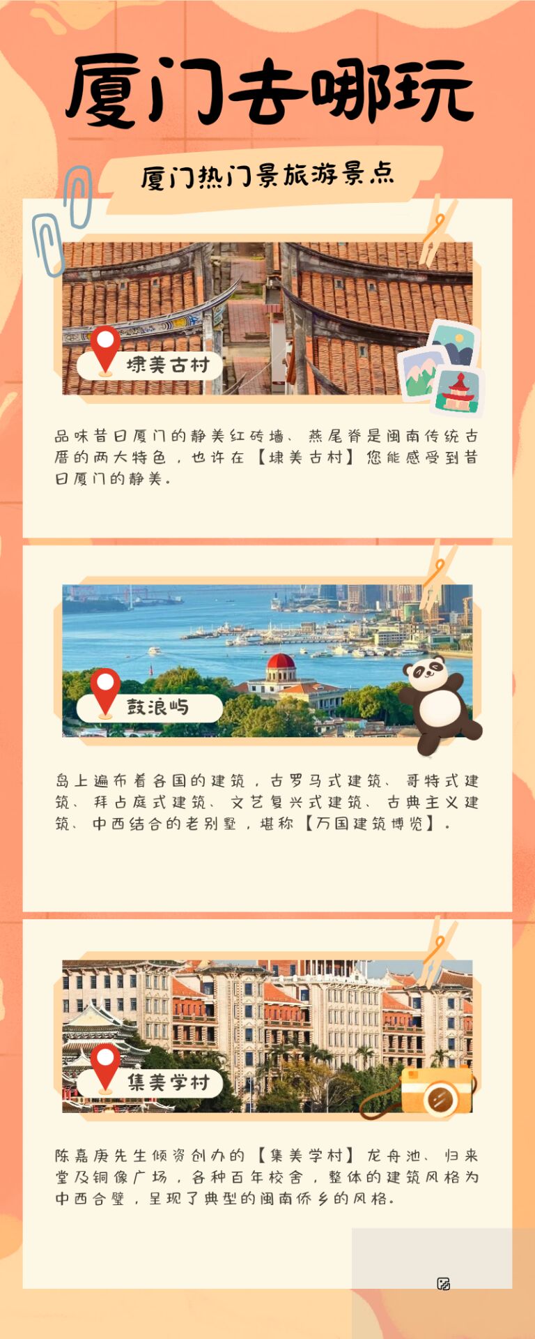 沿途参观林巧稚大夫【毓园】倾听“万婴之母”林巧稚女士的故事。【海天堂构】老别墅是中西方文化结合的典范之作。门楼是典型中国传统式样,前后两侧的楼宇,普遍采用古希腊柱式,窗饰大都为西洋风格,但墙面与转角又是中国雕饰,斗拱装饰走廊外沿,显得格外稳重。在老别墅里,还能欣赏到难得一听的“御前清曲”、非物质文化遗产南音,观看木偶戏世家精彩绝伦的表演。自由活动期间,可到【龙头路商业街】品茗美食,拿着我们赠送给您的手绘地图和盖章本,穿梭于各式风格的特色小店之间。感受时下最流行的“抖音-土耳其冰淇淋”的套路吧......