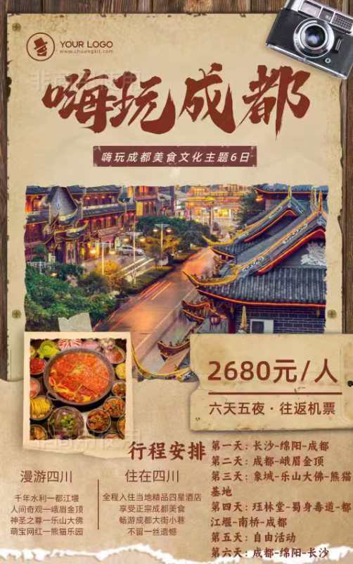 看川剧变脸、品成都风味、近距离观赏大熊猫