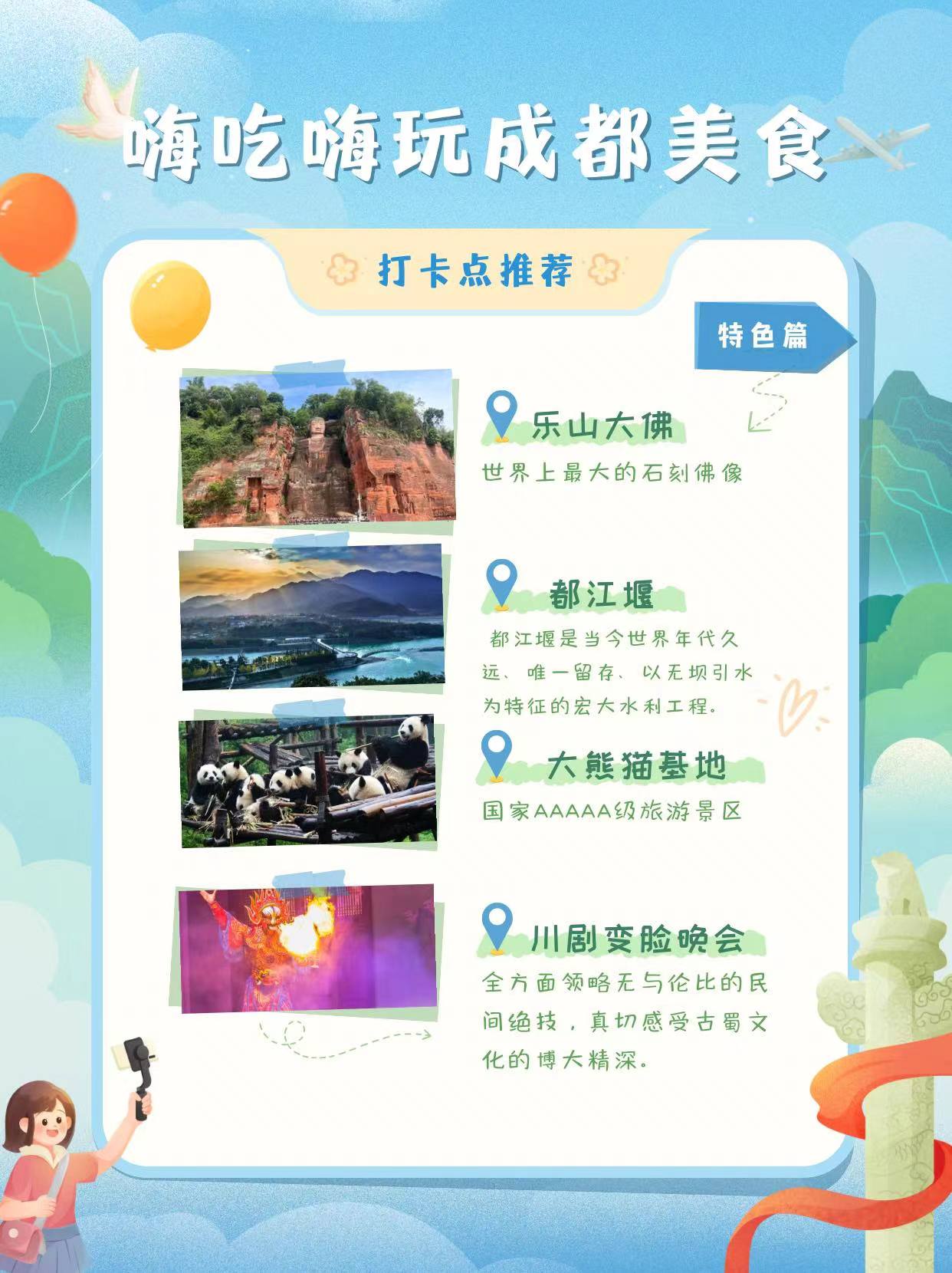 晚上【川剧变脸晚会】一边品位四川火锅,一边观看晚会表演, 变脸,滚灯,武术三大流派之一的峨眉武术等等节目。让您全方位领略无与伦比的民间绝技,真切感受古蜀文化的博大精深(此项目为赠送项目,不参加不退费)