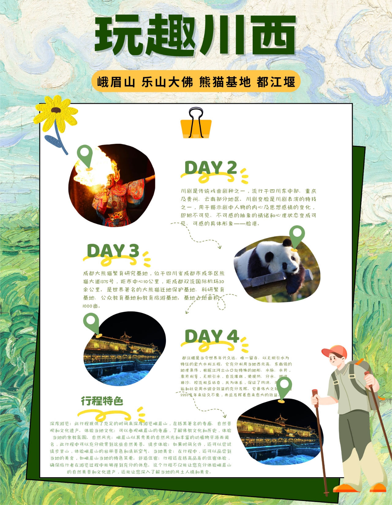 晚上【川剧变脸晚会】一边品位四川火锅,一边观看晚会表演, 变脸,滚灯,武术三大流派之一的峨眉武术等等节目。让您全方位领略无与伦比的民间绝技,真切感受古蜀文化的博大精深(此项目为赠送项目,不参加不退费)
