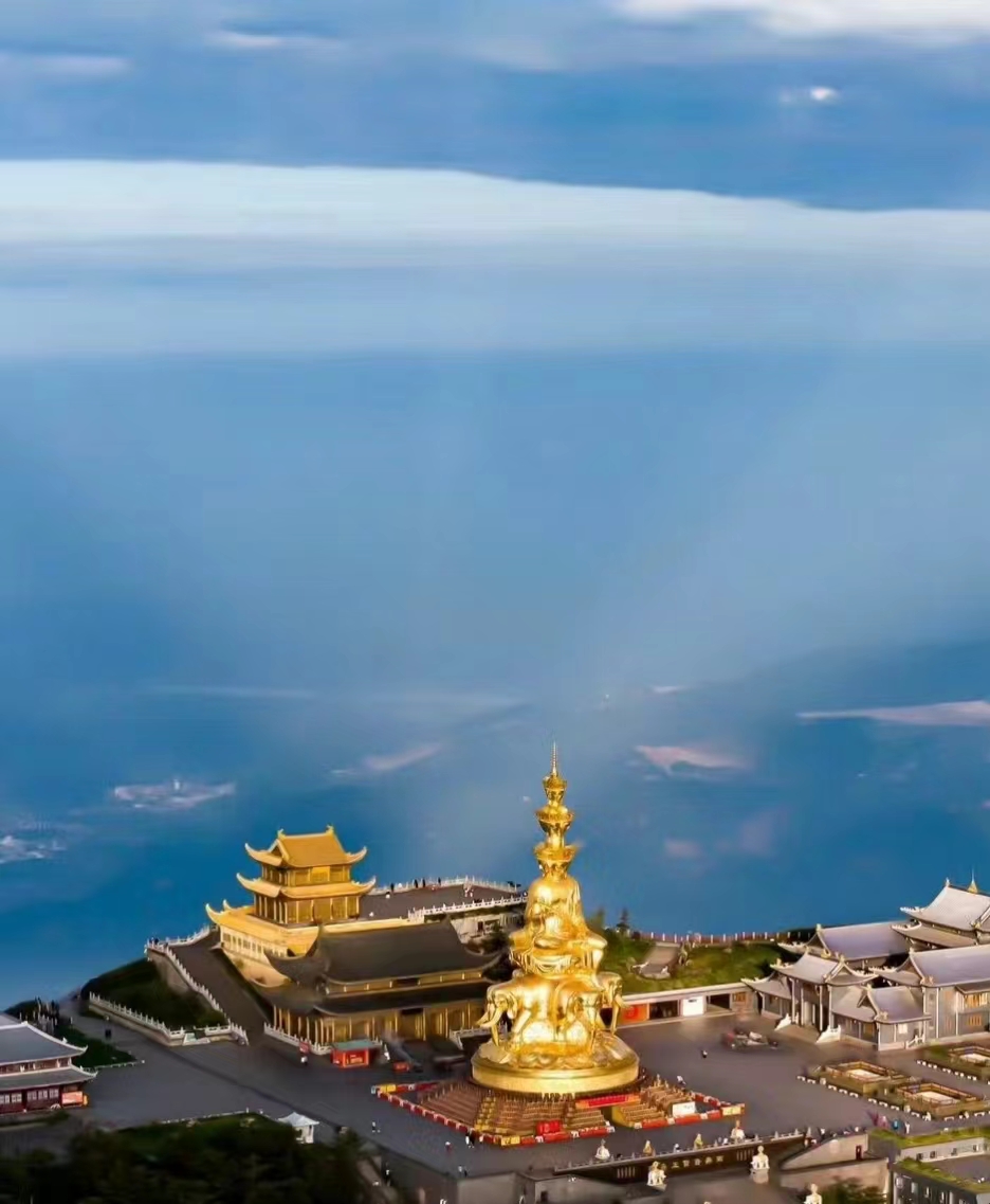 早餐后,前往峨眉山。【峨眉山-金顶】乘坐观光车(费用90元自理,上行索道80/下行索道40需自理)至雷洞坪,徒步至接引殿。峨眉金顶是以一尊48米高的十方普贤铜像为中心,由耀日的金殿、雄浑的铜殿、灼灼的银殿和洁白的朝圣大道组成的新金顶。金顶为峨眉山游程的最高峰,其海拔为3077米。顶上是个小平原,原有铜殿一座,在太阳的照射下,光彩夺目,故而得名金顶。登上金顶,人们顿觉万象排空,气势磅礴,惊叹天地之奇妙。在峨眉山金顶,还可能欣赏峨眉的四大奇景:日出、云海、佛光、圣灯。