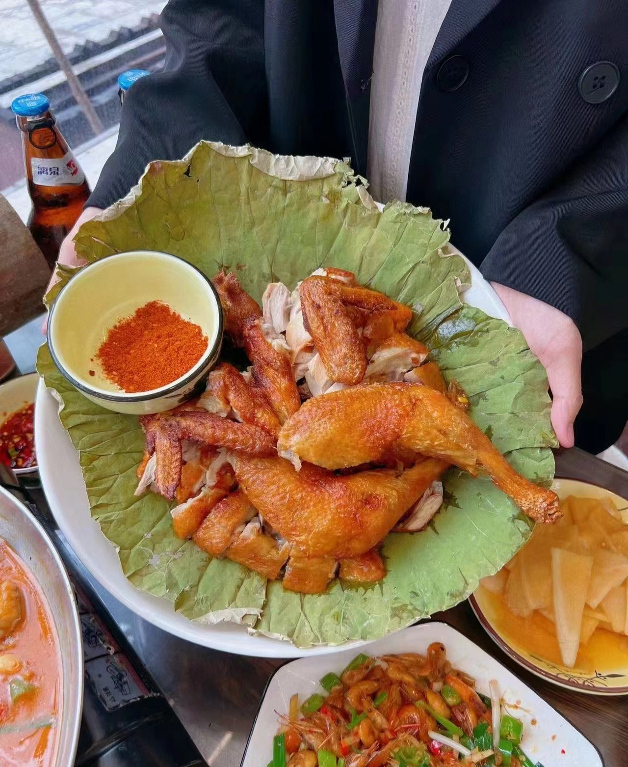 蒸笼:粗粮,川西羊疙瘩,一品熊猫包,椒香手撕鸡,天府叶儿粑,香酥烤鸭,川味干锅。都江堰必吃小吃:【叫花鸡腿】皮薄肉嫩,外配荷叶点缀,十里飘香。