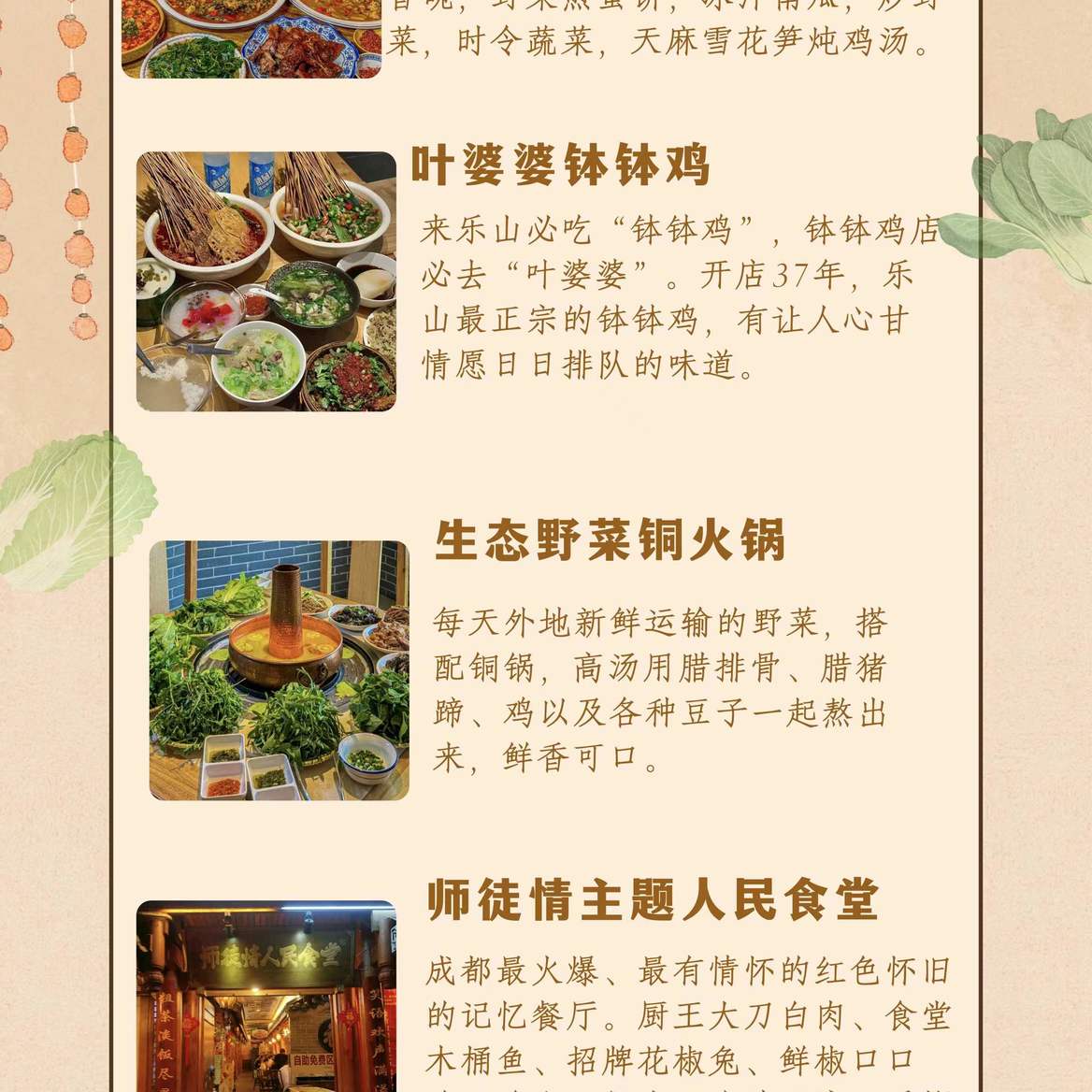 午餐:叶婆婆钵钵鸡。来乐山必吃“钵钵鸡”,钵钵鸡店必去“叶婆婆”。开店37年,乐山最正宗的钵钵鸡,有让人心甘情愿日日排队的味道。