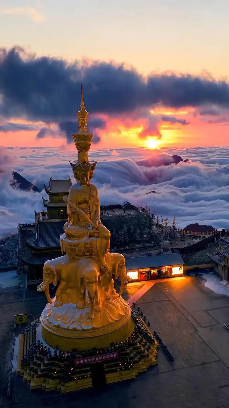 早餐后,前往峨眉山。【峨眉山-金顶】乘坐观光车(费用90元自理,上行索道80/下行索道40需自理)至雷洞坪,徒步至接引殿。峨眉金顶是以一尊48米高的十方普贤铜像为中心,由耀日的金殿、雄浑的铜殿、灼灼的银殿和洁白的朝圣大道组成的新金顶。金顶为峨眉山游程的最高峰,其海拔为3077米。顶上是个小平原,原有铜殿一座,在太阳的照射下,光彩夺目,故而得名金顶。登上金顶,人们顿觉万象排空,气势磅礴,惊叹天地之奇妙。在峨眉山金顶,还可能欣赏峨眉的四大奇景:日出、云海、佛光、圣灯。