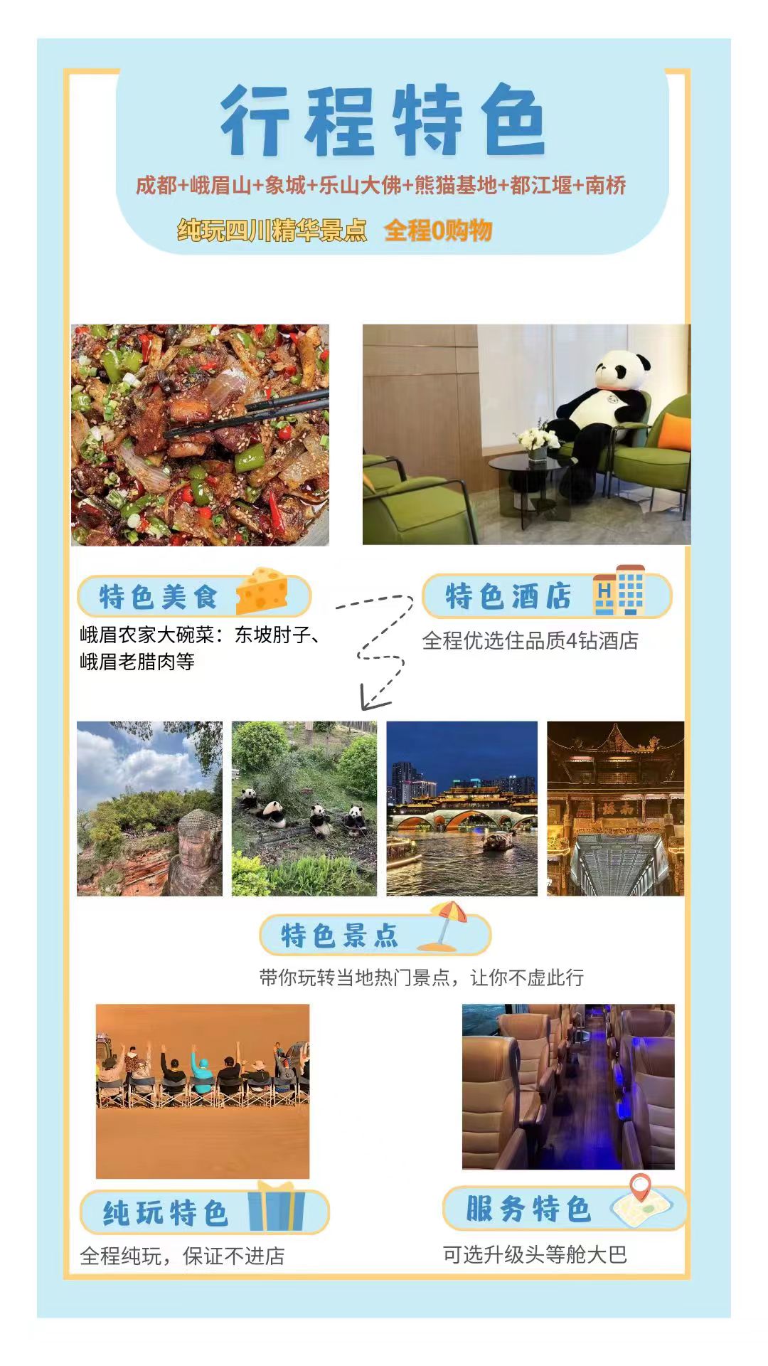 早餐后前往风情古街【象城禅意小镇】(具体游览,导游根据时间来安排),这里传承了川西仿古建筑风格,融入了当地的文化风情。是峨眉山市颇具特色民俗文化旅游街。【游船乐山】:告别超3小时排队,拒绝往返25层楼高徒步,这才是欣赏大佛更好的角度!乘船观看大佛全貌,更好的感受大佛威严壮观,并诚心为自己,为家人,为朋友祈福!