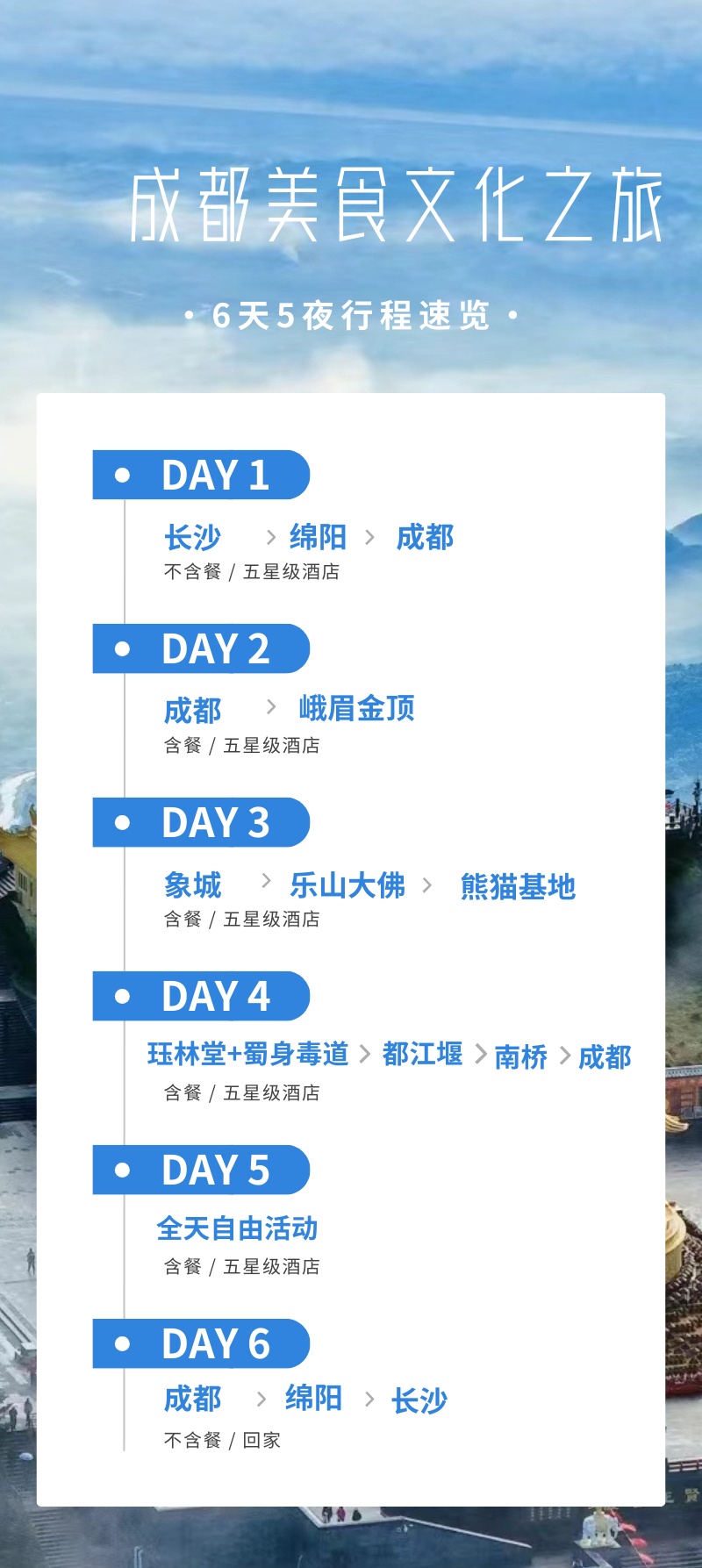 1、交通:长沙—绵阳往返经济舱,含机场建设及燃油费;当地空调旅游大巴