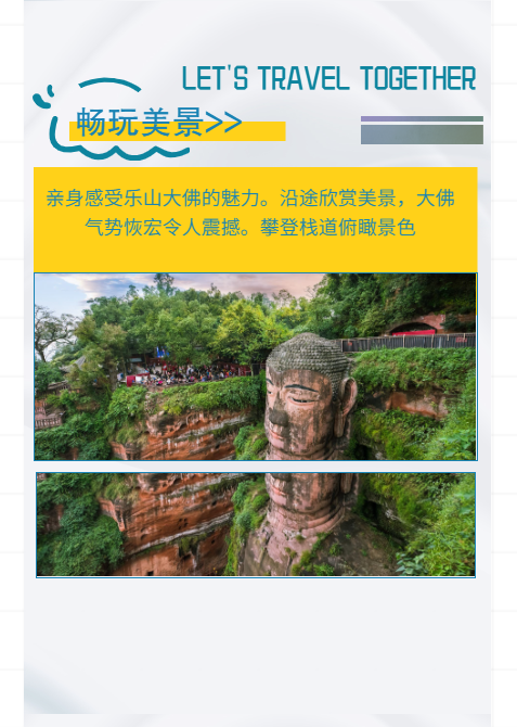 早餐后前往风情古街【象城禅意小镇】(具体游览,导游根据时间来安排),这里传承了川西仿古建筑风格,融入了当地的文化风情。是峨眉山市颇具特色的民俗文化旅游街。【游船乐山】:告别超3小时排队,拒绝往返25层楼高徒步,这才是欣赏大佛更好的角度!乘船观看大佛全貌,更好的感受大佛威严壮观,并诚心为自己,为家人,为朋友祈福!