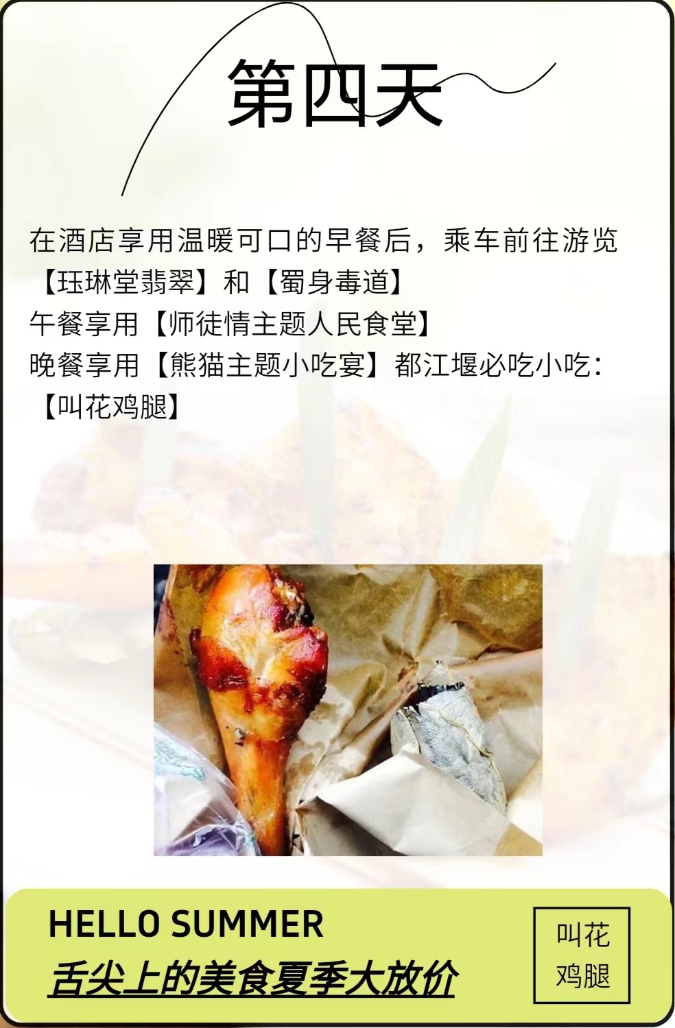 D3 | 都江堰熊猫基地观光车+讲解费 | 30元/人 | 乘客可根据自身情况自由选择,可委托导游代购,也可以自行在景区售票窗口购买。 |