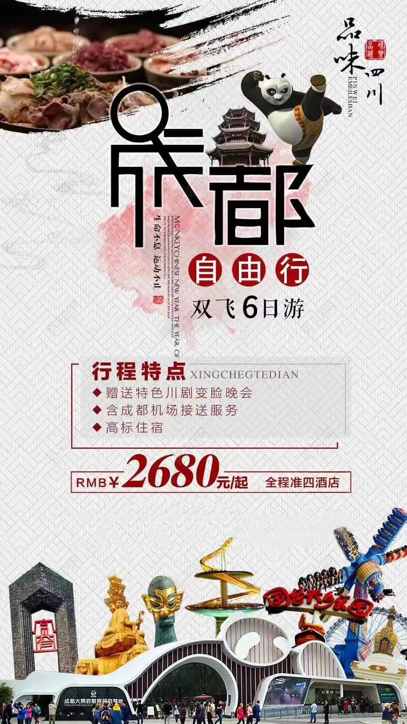 下午游览【熊猫基地】这里是成都周边观赏大熊猫最便利的地方,很多萌萌的大熊猫等着你哦,建设完全模拟大熊猫野外生活环境,建有湖泊、溪流、竹林、草坪等,你可以近距离的去观赏这些萌哒哒的国宝们。