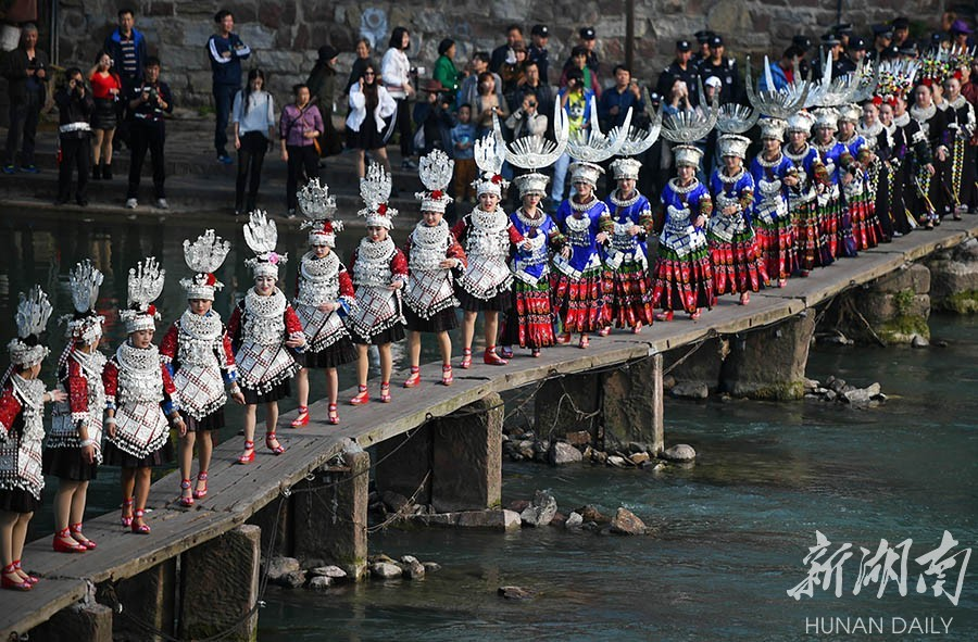 风俗习惯方面,苗族聚族而居,少则数户,多则数十户、上百户为村寨。房屋廊檐相接,湘西苗族聚居区多木质结构的平房,房屋坐北朝南,有一字开和倒凹形。此外,也有建楼房者,称吊脚楼。饮食以大米为主食,辅以玉米、红薯。腊肉、腌鱼为苗家待客佳品。