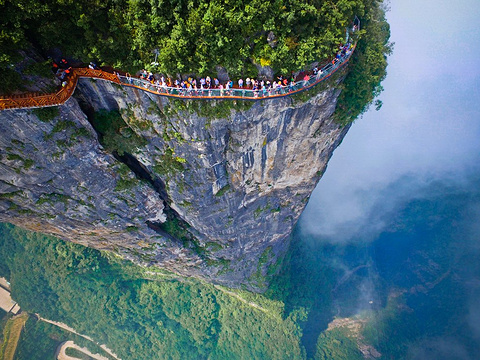 乘车赴【天门山国家森林公园】,乘高山客运索道(长7.5公里),走玻璃栈道,远观鬼谷洞;拜求儿洞;游天界佛国天门山寺;乘观光汽车体验公路奇观“99弯通天大道”的奇绝;登999级天梯或乘扶梯至天然穿山溶洞“天门洞”体验自然造化的神奇和震撼。