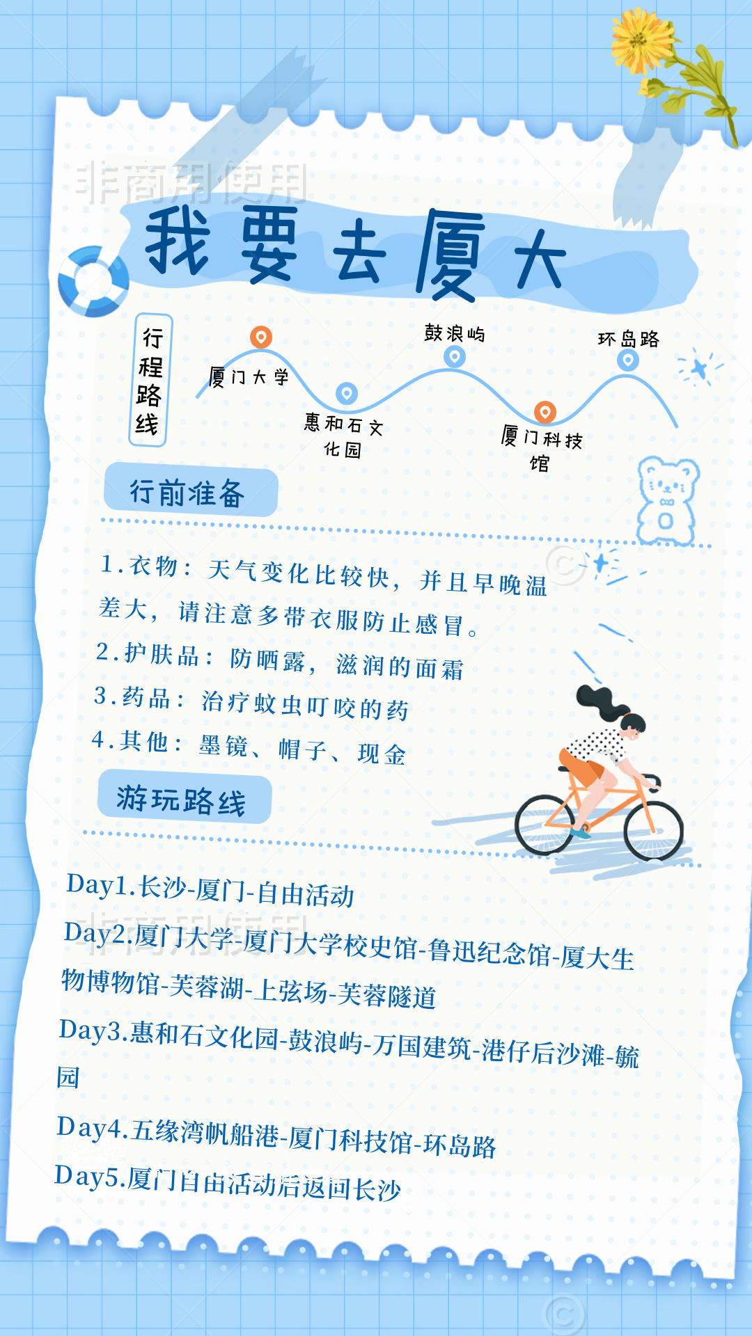 1、交通:长沙—厦门高铁二等座,当地空调旅游大巴;