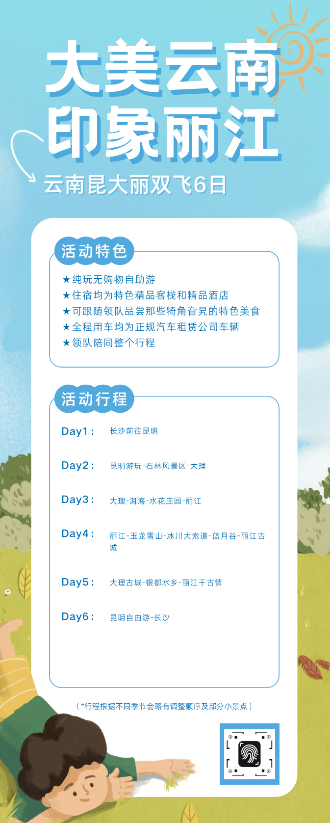1、交通:长沙—昆明往返经济舱,含机场建设及燃油费;当地空调旅游大巴