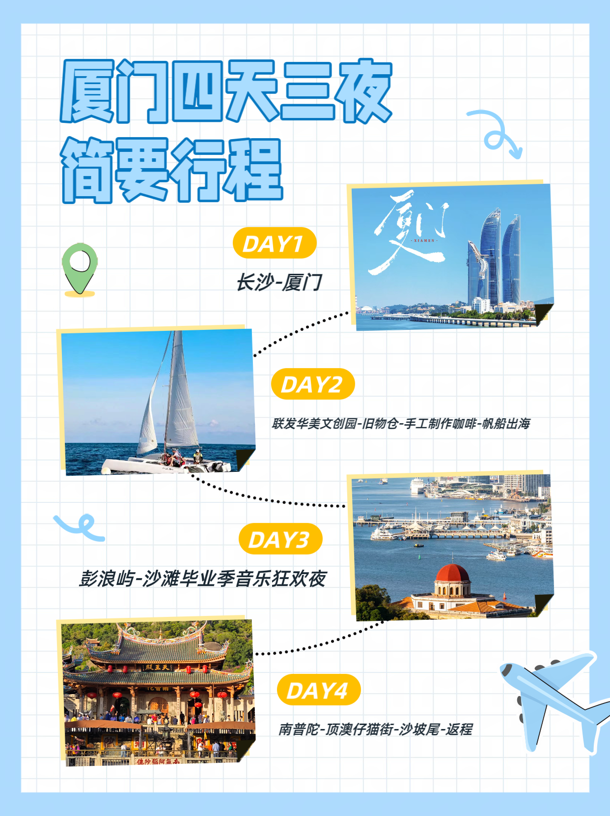 1、交通:长沙—厦门往返经济舱,含机场建设及燃油费;当地空调旅游大巴