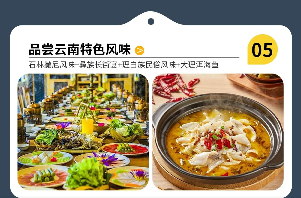 18:00-19:00晚餐晚餐“马帮菜荣归长街宴”还原当年丽江马帮的就餐氛围,大口吃肉、大口喝酒,原生态的云南食材。