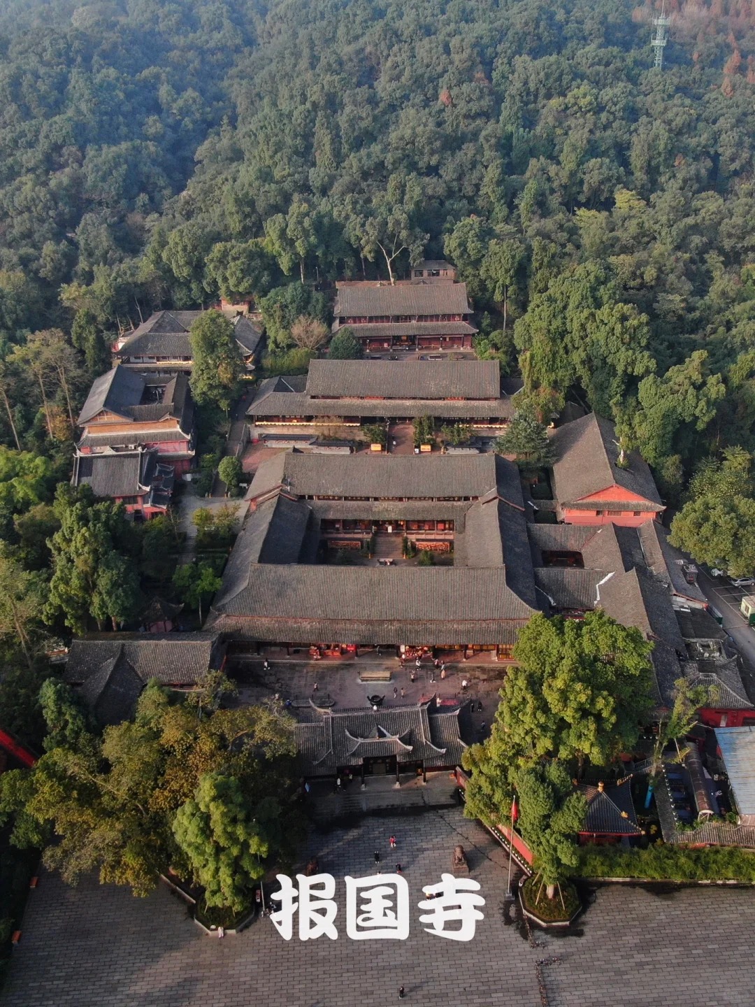 峨眉山的第一座寺庙、峨眉山佛教协会所在地,是峨眉山佛教活动的中心。峨眉山的众多寺庙里,报国寺是入山的门户,是游峨眉山的起点。这里寺周楠树蔽空,红墙围绕,伟殿崇宏,金碧生辉,香烟袅袅,磬声频传。