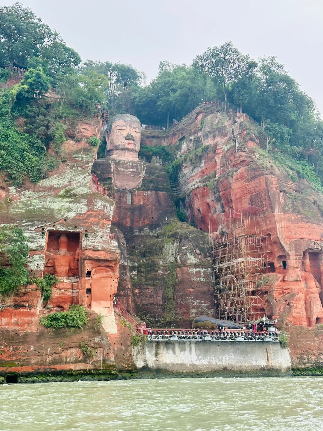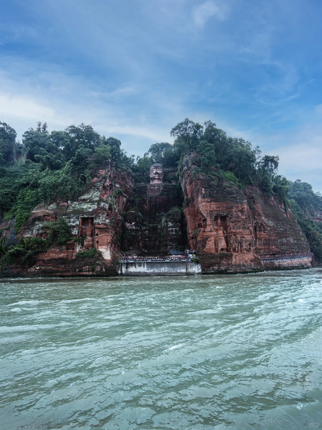 又名凌云大佛。乐山大佛素有“山是一尊佛·参拜,庄严雄伟,佛是一座山·仰视,气势崴嵬”之称。游江船上正面观坐佛容貌,远观凌云山佛是一座山 山是一尊佛的奇妙意境。