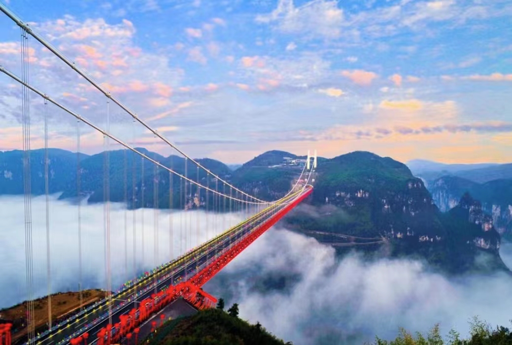 10:00 前往矮寨奇观景区,游览【悬崖栈道】【矮寨大桥】