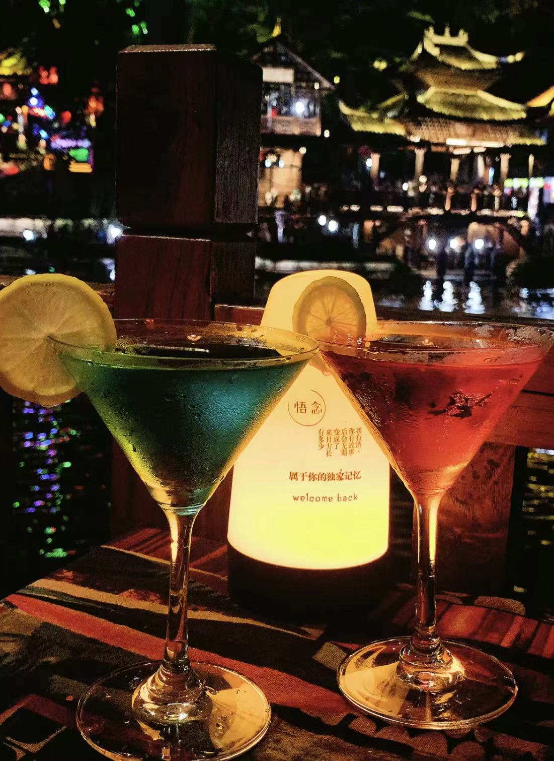 晚上漫步在灯光下的古城中,可以在各个小店或者婆婆们的摊位上一尝古城特色小吃:湘西腊肉,血粑鸭,酸辣子粑粑,米豆腐,虾饼,苗家酸萝卜,蒿子粑粑……也可以捧一杯啤酒,坐在沱江边的酒吧中,吹着江风,听着酒吧那或清雅或摇滚的音乐,感受着古城的独特风情!凤凰古城特色酒吧:三十九度吧,愚人码头,湘西往事等等。