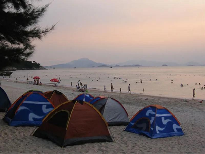 亲手搭帐篷,海边趣味【沙滩排球比赛】在沙滩上进行【拔河比赛】(烧烤DIY,BBQ)晚会,导游为大家准备了升火用品及烧烤材料,同学们可自自己动手烧烤,尽情享受自助BBQ的美食,还可围着火堆,看场露天电影,迎着海风,尽情的欢歌乐舞……活动结束后,回到自己搭建的帐篷休息(2人一帐篷),枕着沙滩