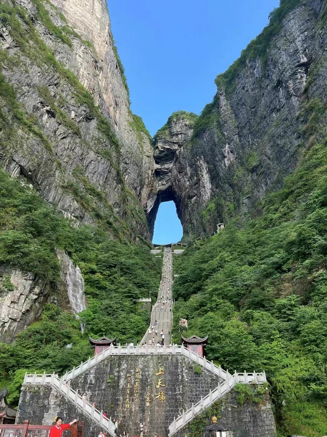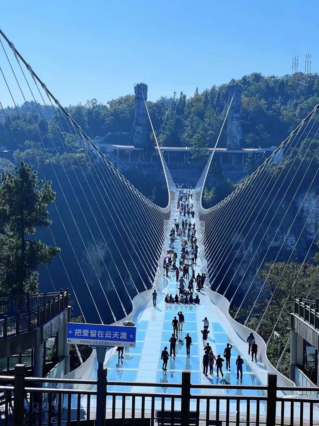 早餐后前往游览文学大师金庸欣然挥毫的“天门仙山”,也是黄渤、徐峥主演的电影《玩命邂逅》拍摄地之一的—【天门山国家森林公园】(门票上山大索道已含,游览时间约4小时) 乘坐“世界第一长高山客运索道,索道全长7455米,海拔1279米,体验腾云飞翔的刺激震撼,登张家界之巅云梦仙顶,俯瞰张家界全景,观赏奇妙美丽的盆景花园,游览盆景石区、登云梦仙顶。还有惊险刺激的悬空【玻璃栈道】(天门山扶梯单程及鞋套已含,如需多坐一程请自理32元/人)。挑战你的高空极限,历史文化积淀深厚的天门山,一直被当地人民奉为神山,圣山,更被誉为“湘西第一神山”和“武陵之魂” 的美誉。