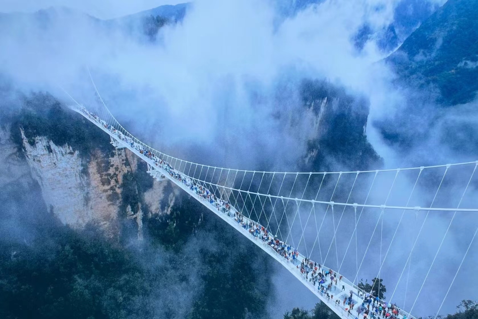 早餐后前往游览文学大师金庸欣然挥毫的“天门仙山”,也是黄渤、徐峥主演的电影《玩命邂逅》拍摄地之一的—【天门山国家森林公园】(门票上山大索道已含,游览时间约4小时) 乘坐“世界第一长高山客运索道,索道全长7455米,海拔1279米,体验腾云飞翔的刺激震撼,登张家界之巅云梦仙顶,俯瞰张家界全景,观赏奇妙美丽的盆景花园,游览盆景石区、登云梦仙顶。还有惊险刺激的悬空【玻璃栈道】(天门山扶梯单程及鞋套已含,如需多坐一程请自理32元/人)。挑战你的高空极限,历史文化积淀深厚的天门山,一直被当地人民奉为神山,圣山,更被誉为“湘西第一神山”和“武陵之魂” 的美誉。