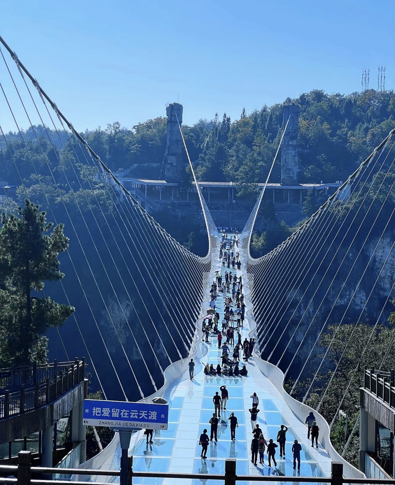 早餐后自由逛快活老街——【溪布街风情街】,溪布街不但汇集了土家、苗、白、侗、瑶五大民族风情酒吧,民族音乐、绘画、婚房等9个主题客栈,还有蜡染、银器、玻璃、陶艺等诸多百年手工作坊。下午游览国家 AAAA 景区有“小九寨沟”之称的—【张家界大峡谷景区+玻璃桥】,位于张家界市慈利县三官寺乡,紧邻世界自然遗产、世界地质公园张家界武陵源风景名胜区。主要景点:一线天、天梯栈道、三叠游道平台、吴王坡、石壁裂缝、千年古藤、神泉峡等。大峡谷中的飞瀑神泉比比皆是,一路游览下来,让人目不暇接。峡谷里植被繁茂,空气清新,凉爽舒适,溪水上弥漫着一层薄雾,宛如来到世外桃源,让人烦恼顿消。