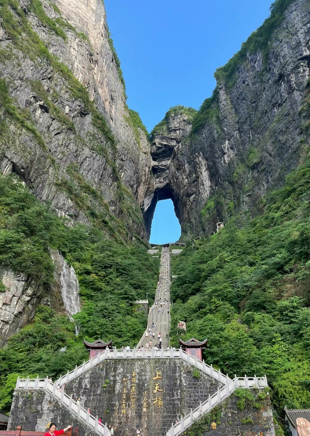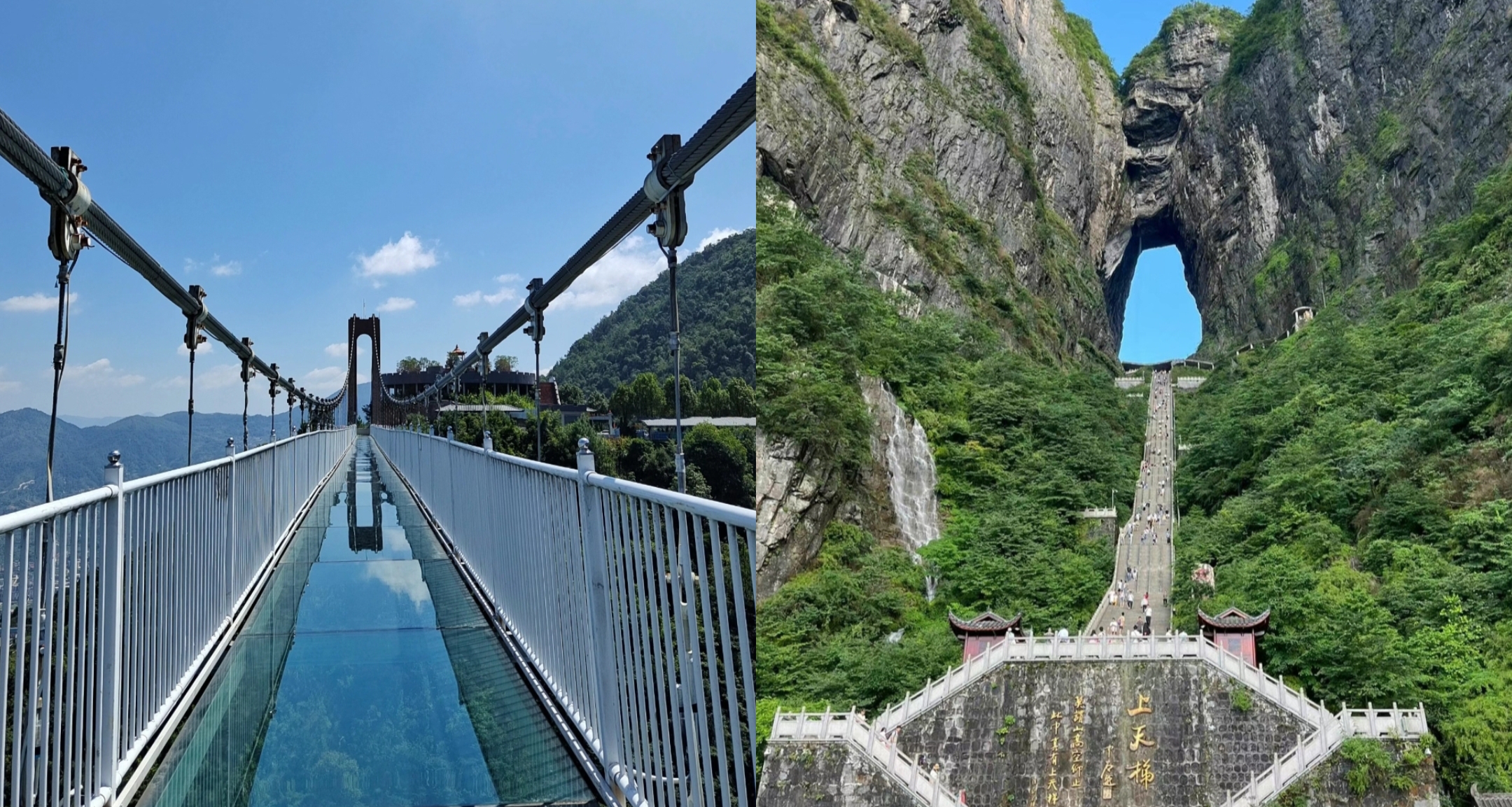 早餐后前往游览文学大师金庸欣然挥毫的“天门仙山”,也是黄渤、徐峥主演的电影《玩命邂逅》拍摄地之一的—【天门山国家森林公园】(门票上山大索道已含,游览时间约4小时) 乘坐“世界第一长高山客运索道,索道全长7455米,海拔1279米,体验腾云飞翔的刺激震撼,登张家界之巅云梦仙顶,俯瞰张家界全景,观赏奇妙美丽的盆景花园,游览盆景石区、登云梦仙顶。还有惊险刺激的悬空【玻璃栈道】(天门山扶梯单程及鞋套已含,如需多坐一程请自理32元/人)。挑战你的高空极限,历史文化积淀深厚的天门山,一直被当地人民奉为神山,圣山,更被誉为“湘西第一神山”和“武陵之魂” 的美誉。